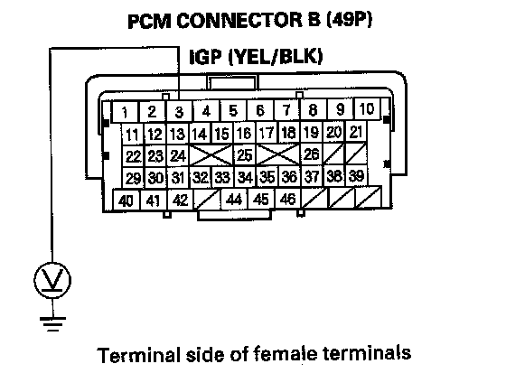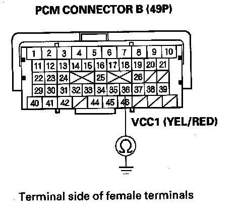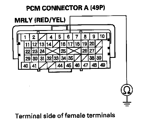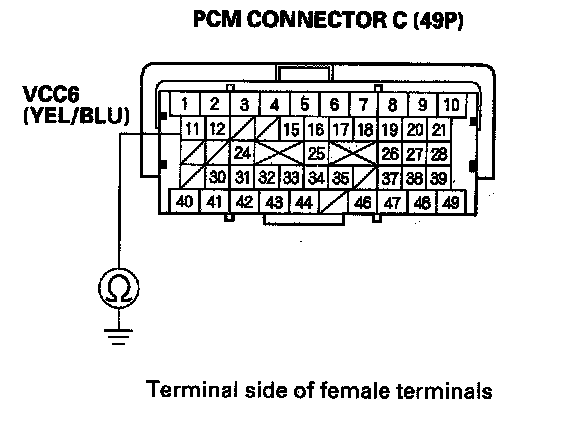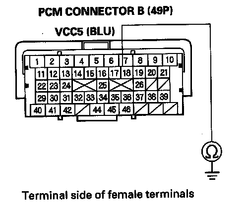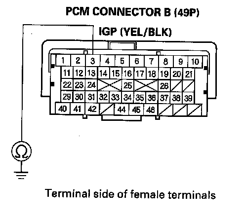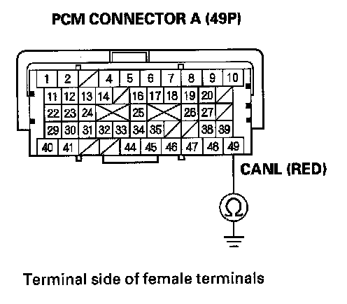 34. Check for continuity between PCM connector terminal A49 and body ground.