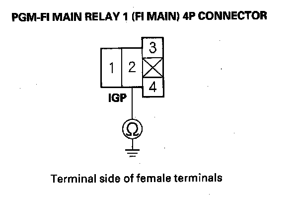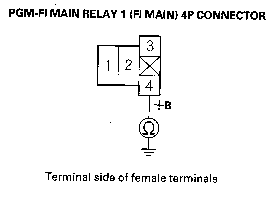 40. Check for continuity between body ground and PGM-FI main relay 1 (FI MAIN) 4P connector terminals No. 1 and No. 4 individually.