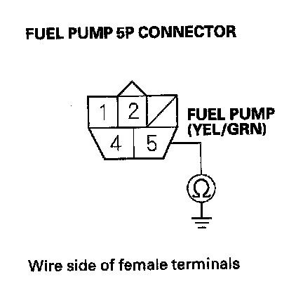 54. Check for continuity between fuel pump 5P connector terminal No. 5 and body ground.