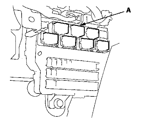 71. Remove PGM-FI main relay 1 (FI MAIN) (A) from the driver's under-dash fuse/relay box.