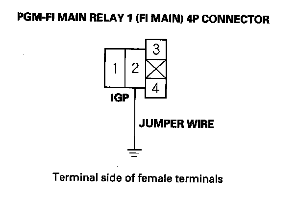 75. Connect PGM-FI main relay 1 (FI MAIN) 4P connector terminal No. 2 to body ground with a jumper wire.