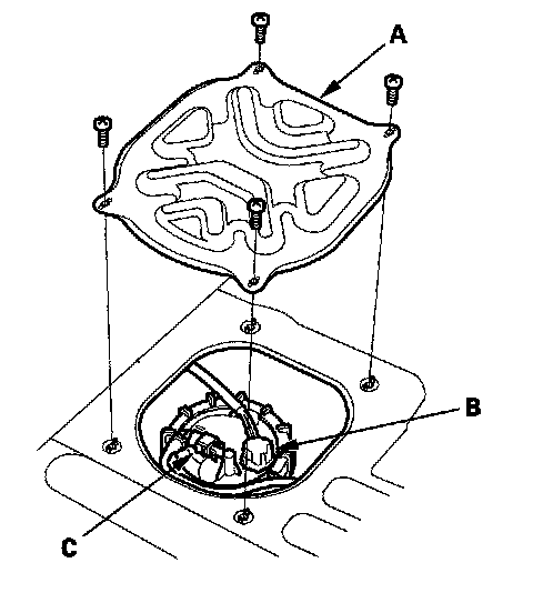 6. Disconnect the quick-connect fitting (C) from the fuel tank unit.