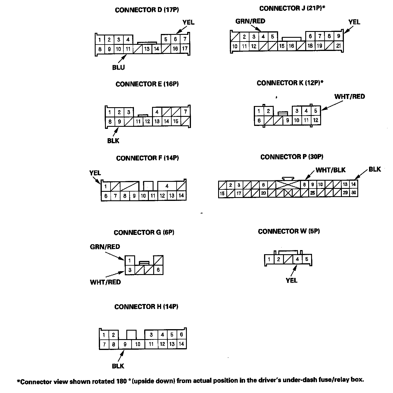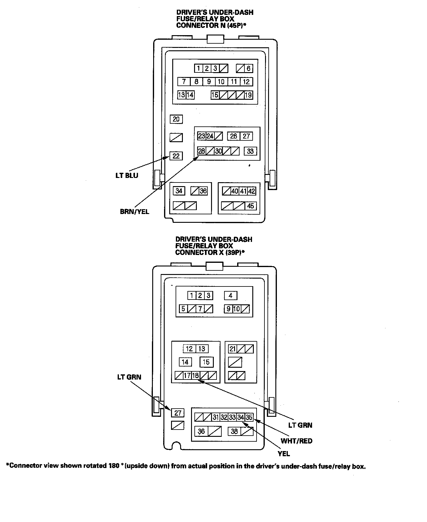 5. Reconnect the connectors to the driver's under-dash fuse/relay box, and make sure these input tests at the appropriate connectors on the driver's under-dash fuse/relay box.