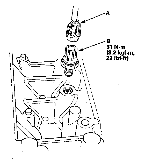 3. Disconnect the knock sensor 1P connector (A), then remove the knock sensor (B).