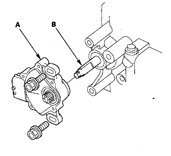 14. Install the transmission range switch (A) gently over the selector control shaft (B), and install the bolts loosely.
