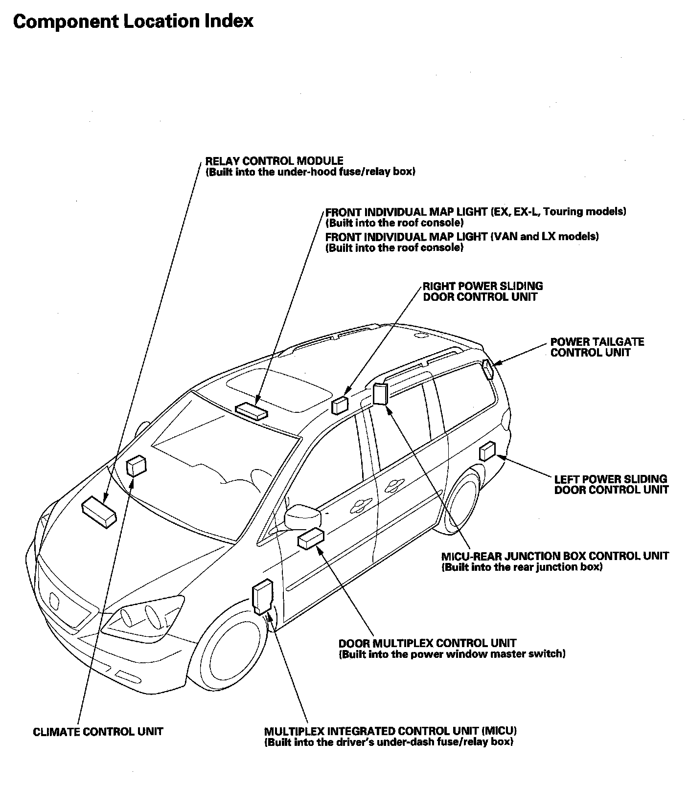 Multiplex Integrated Control System Component Location Index: