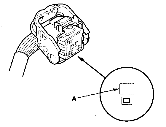4. When diagnosis/troubleshooting is done at the PCM connector, use the terminal test port (A) above the terminal you need to check.