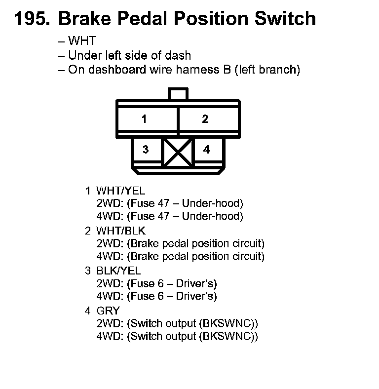 195. Brake Pedal Position Switch: