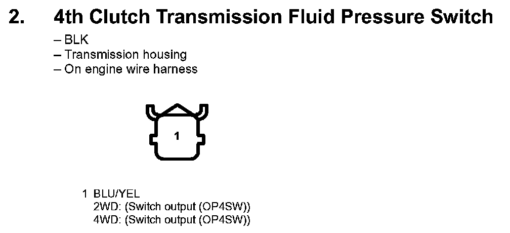 2. 4th Clutch Transmission Fluid Pressure Switch: