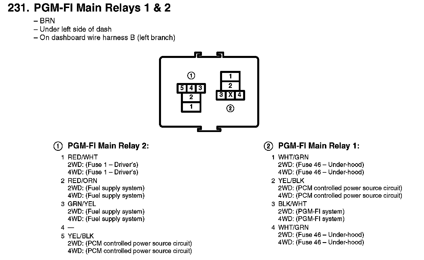 231. PGM-FI Main Relays 1 & 2: