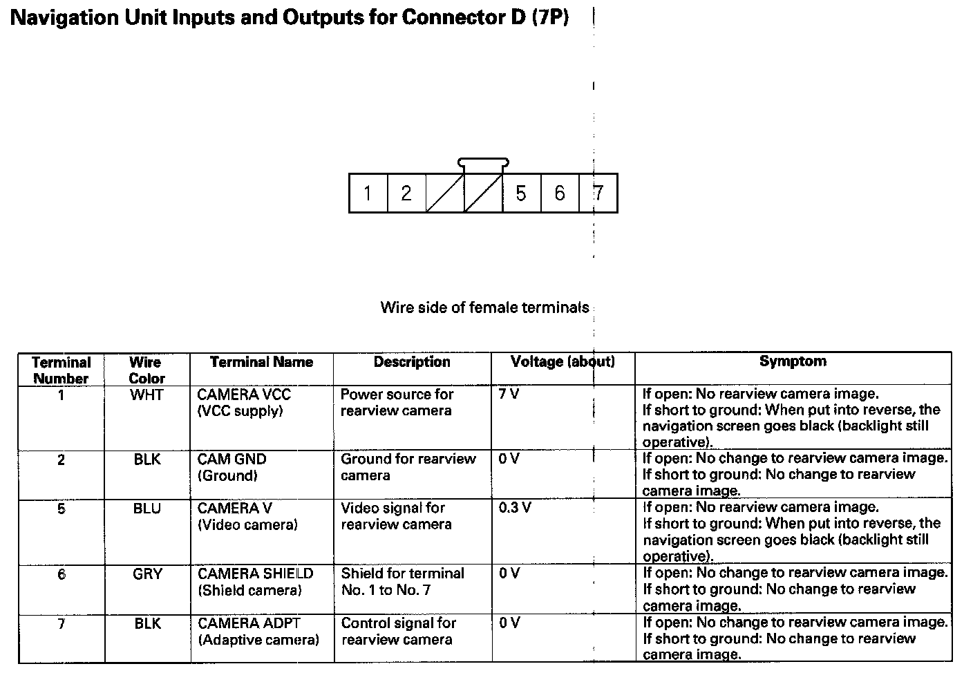 Navigation Unit Inputs and Outputs for Connector D (7P):