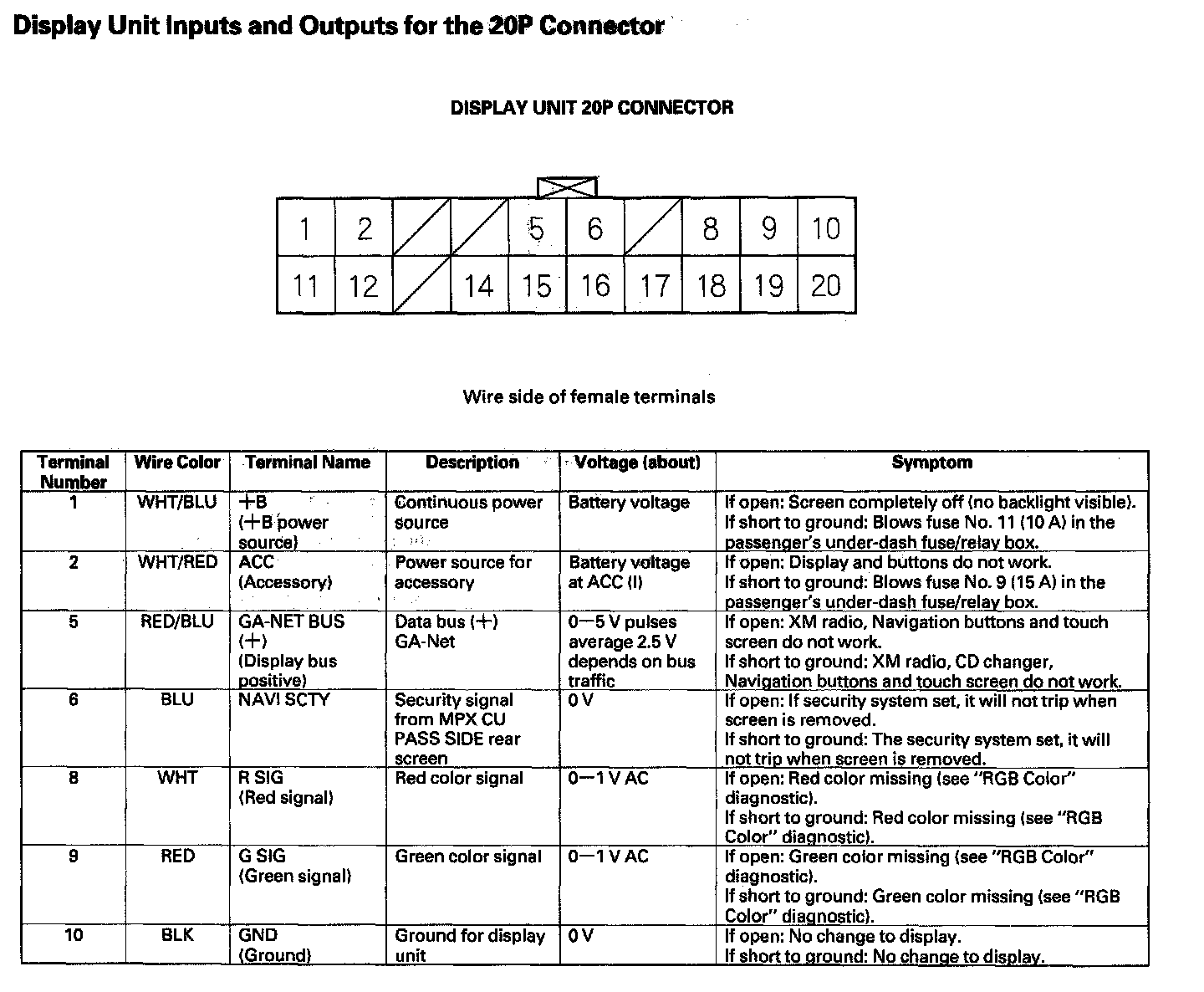 Display Unit Inputs And Outputs For The 20P Connector - Part 1: