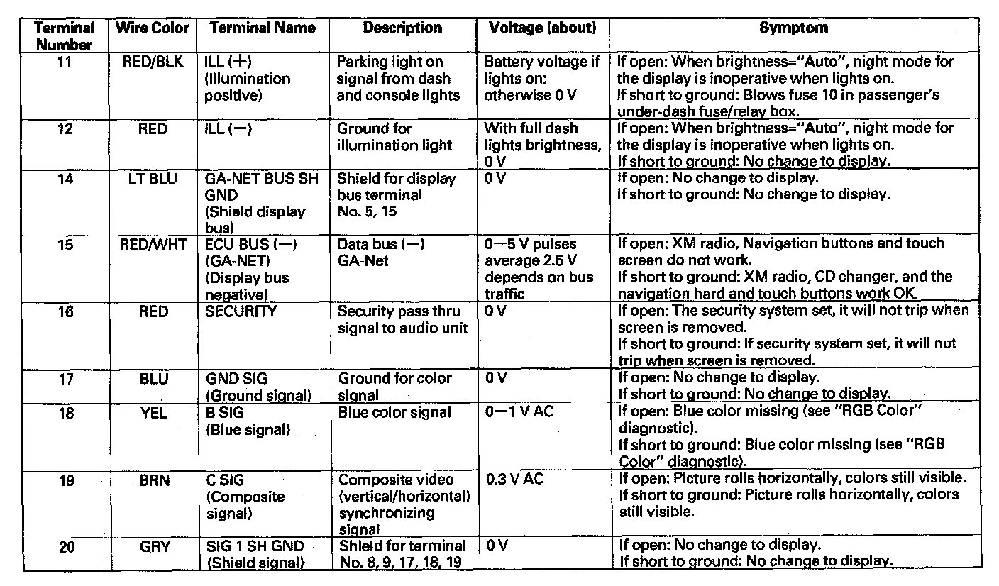 Display Unit Inputs And Outputs For The 20P Connector - Part 2: