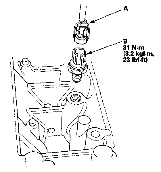 3. Disconnect the knock sensor 1P connector (A), then remove the knock sensor (B).