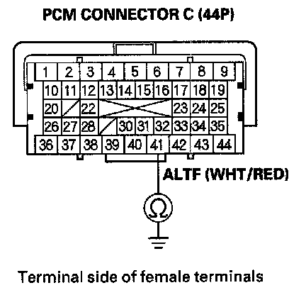 8. Check for continuity between body ground and PCM connector terminal C41.