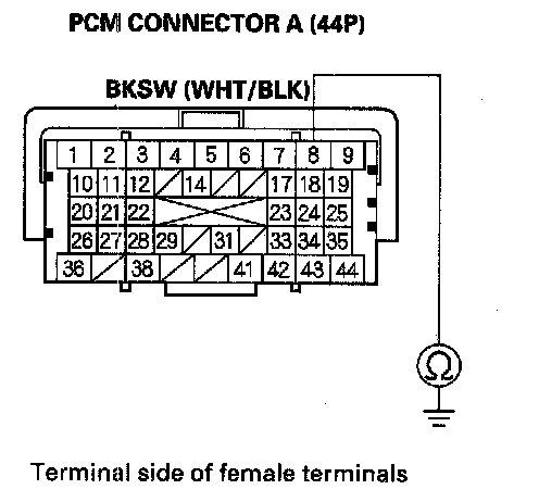 8. Check for continuity between PCM connector terminal A8 and body ground.