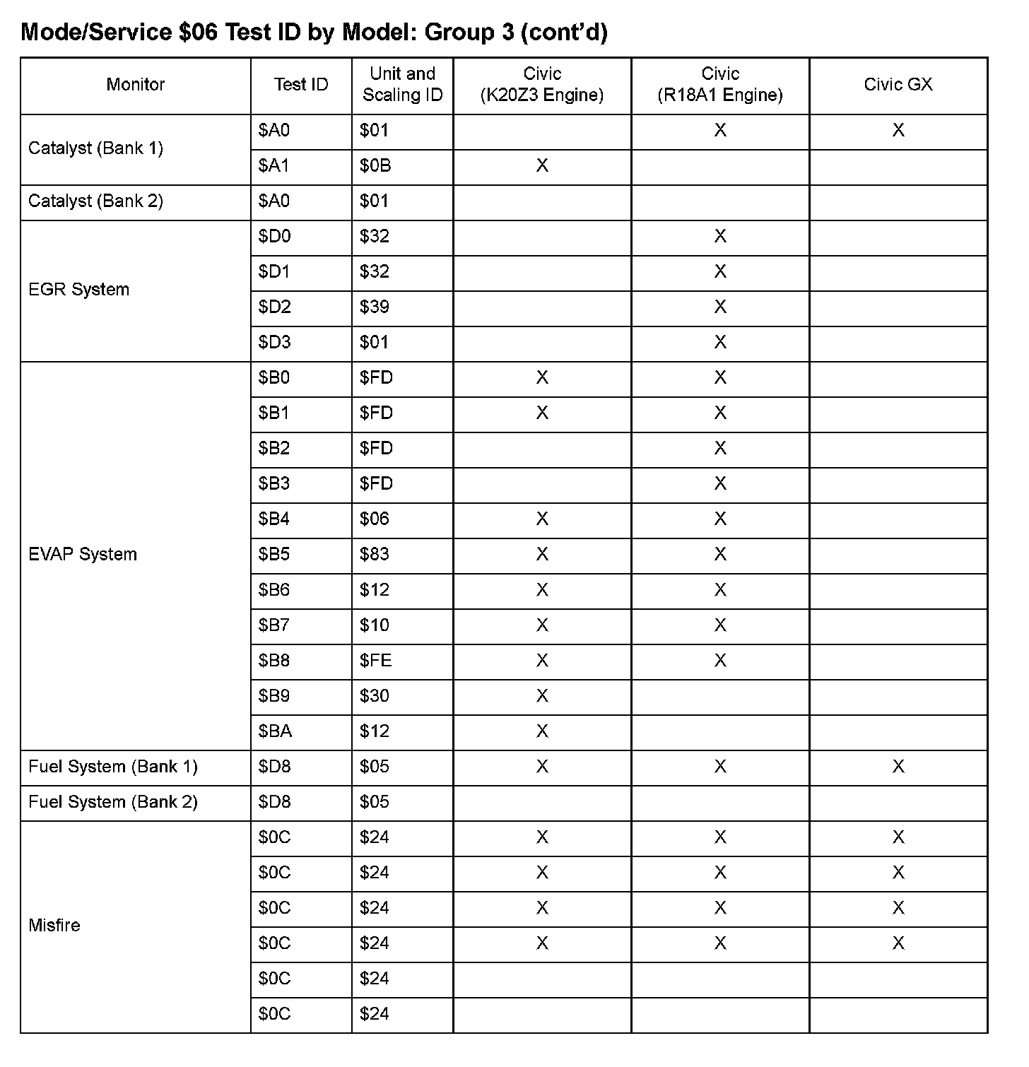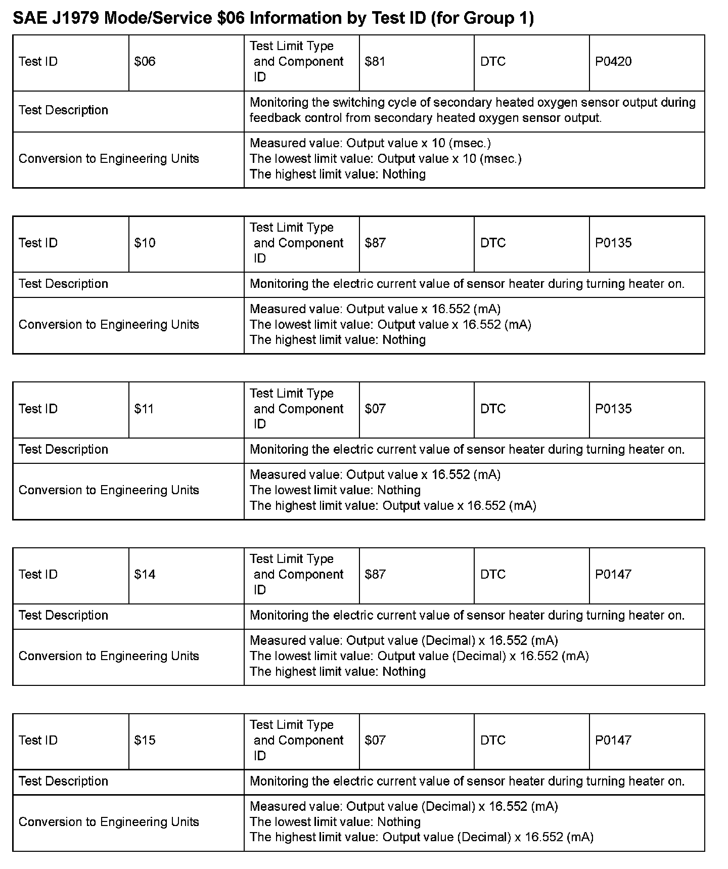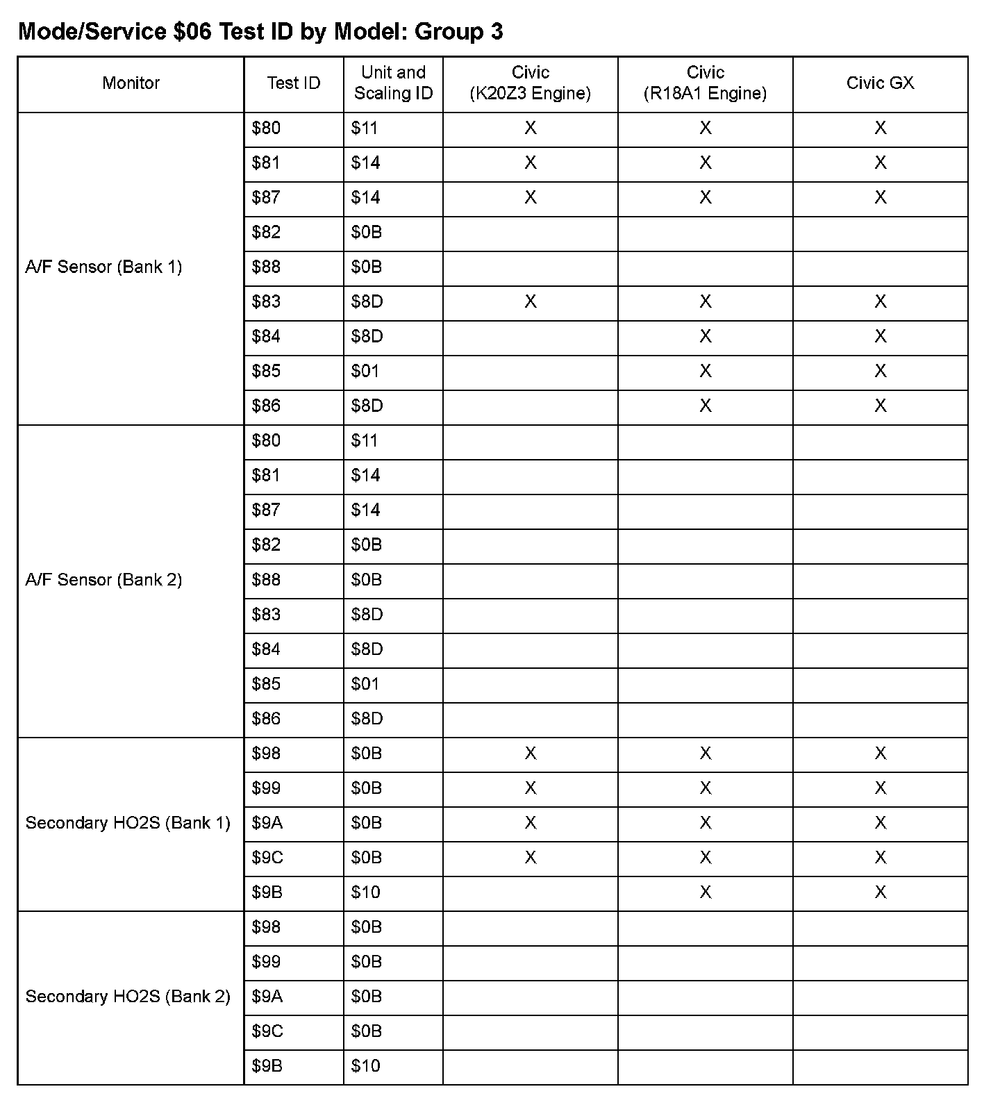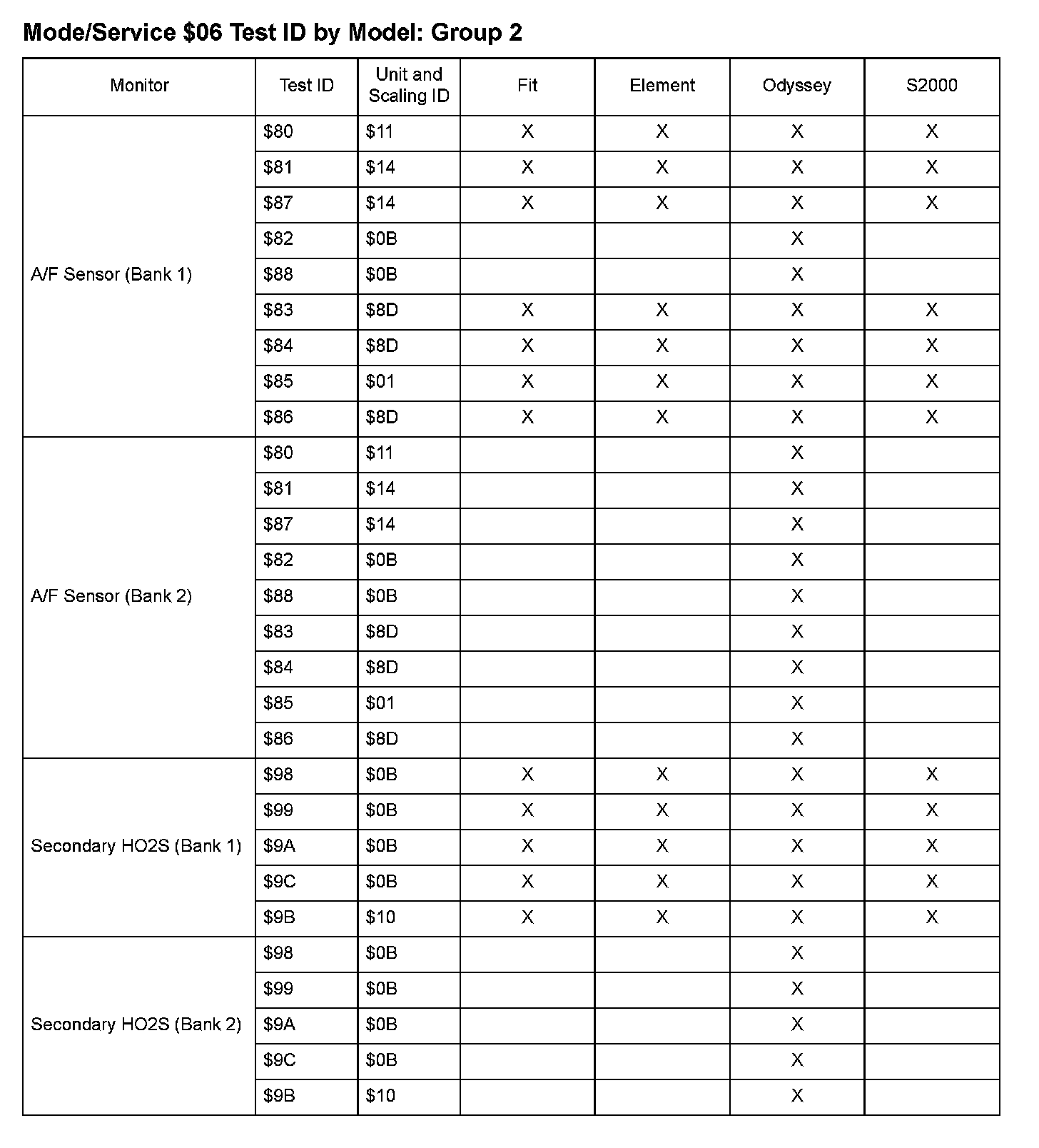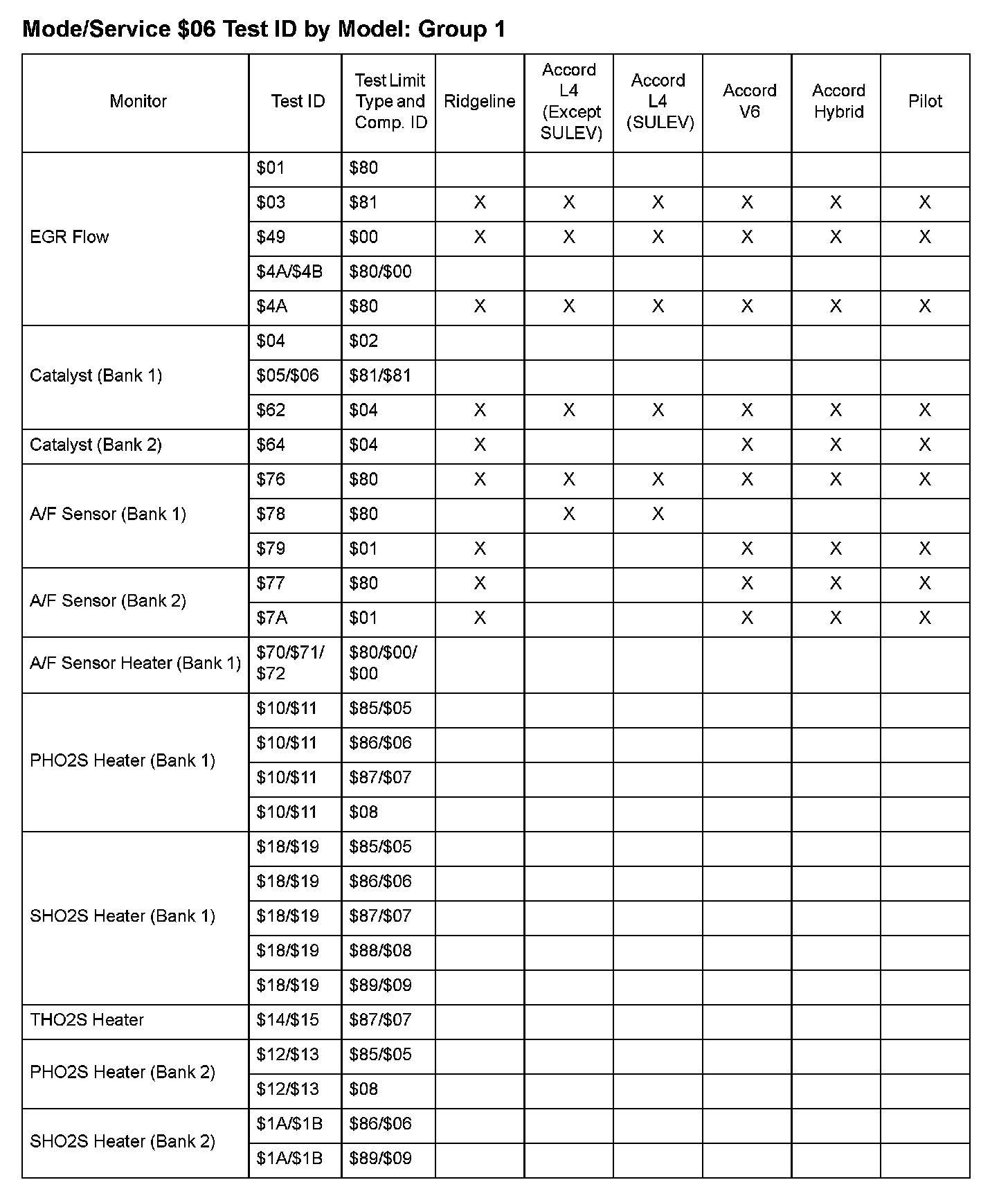 SAE J1979 Mode $06 Test Information: All 2007 Hondas