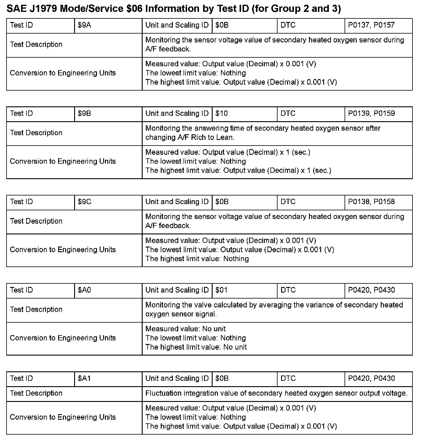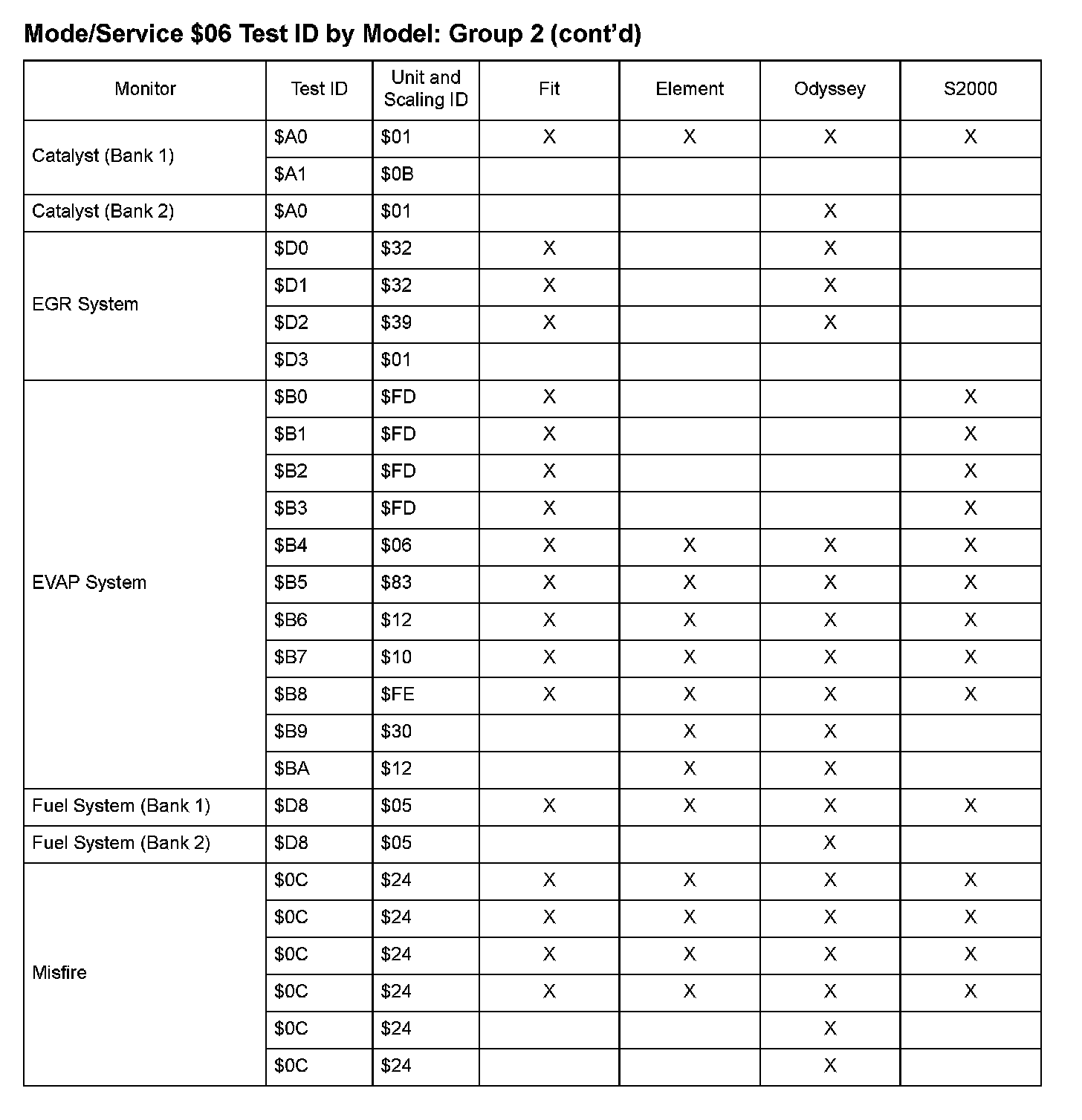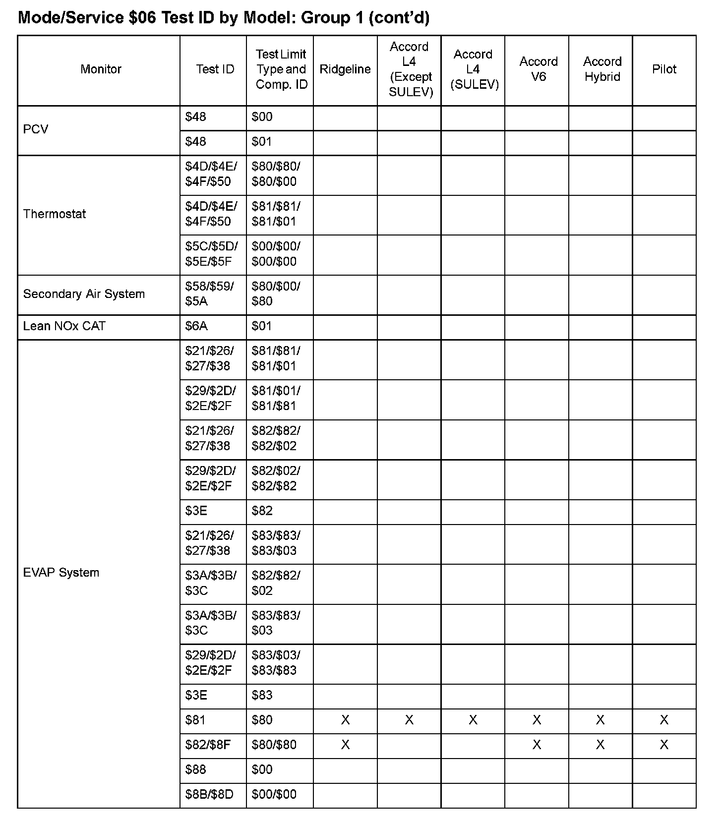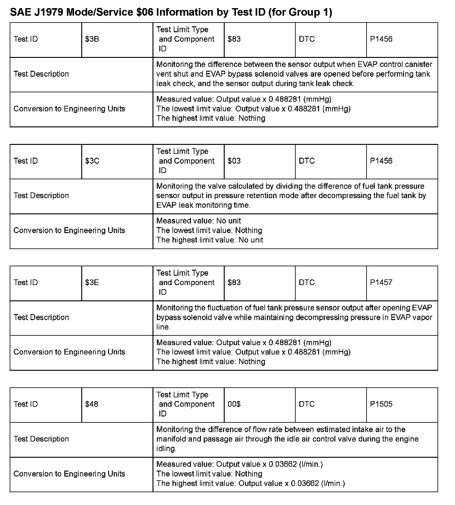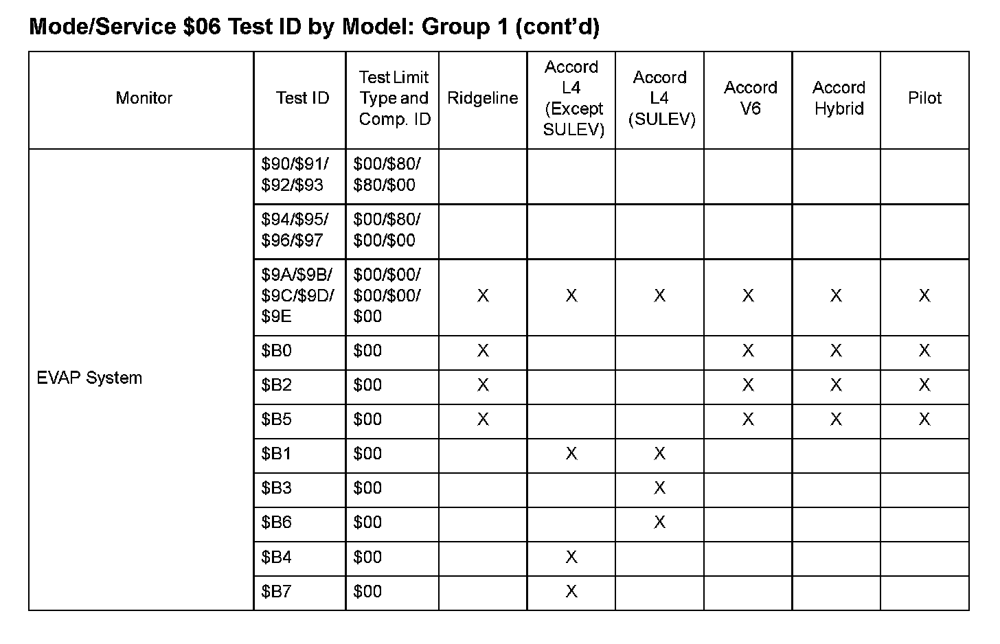 SAE J1979 Mode $06 Test Information: All 2007 Hondas