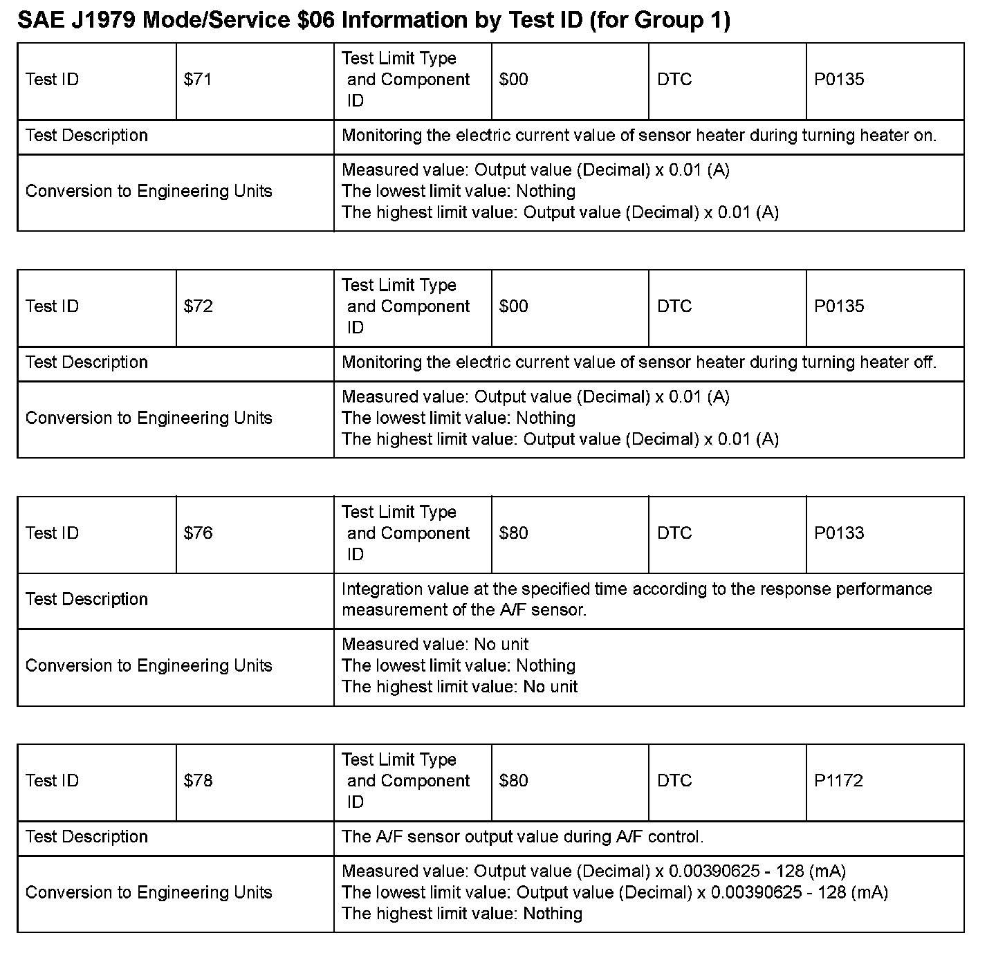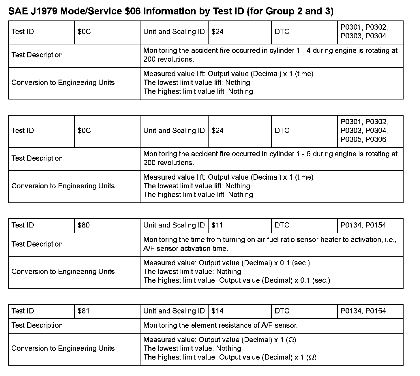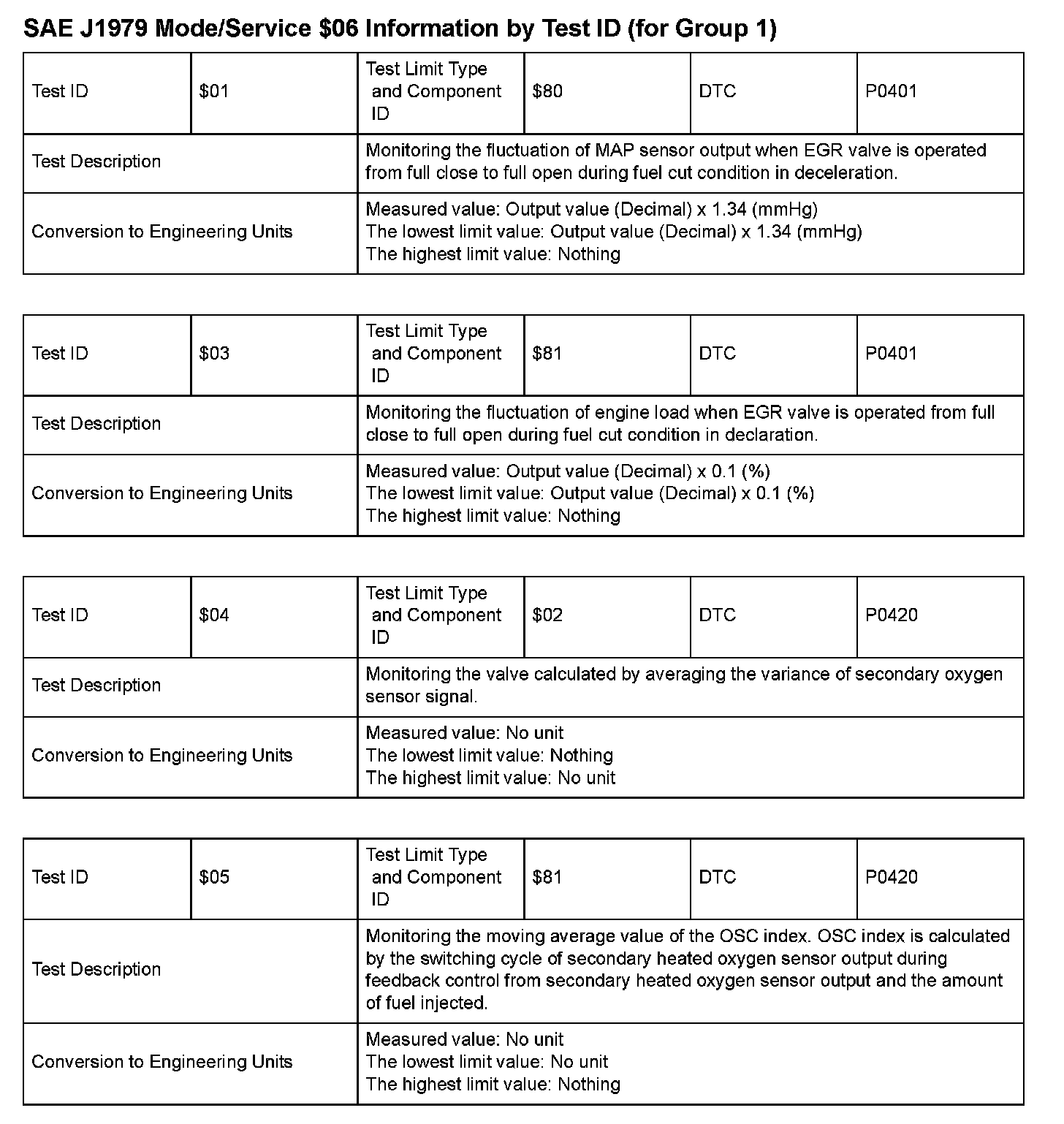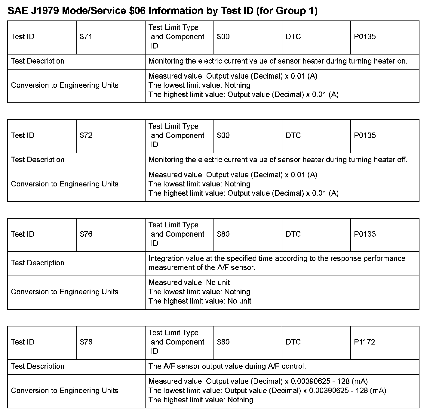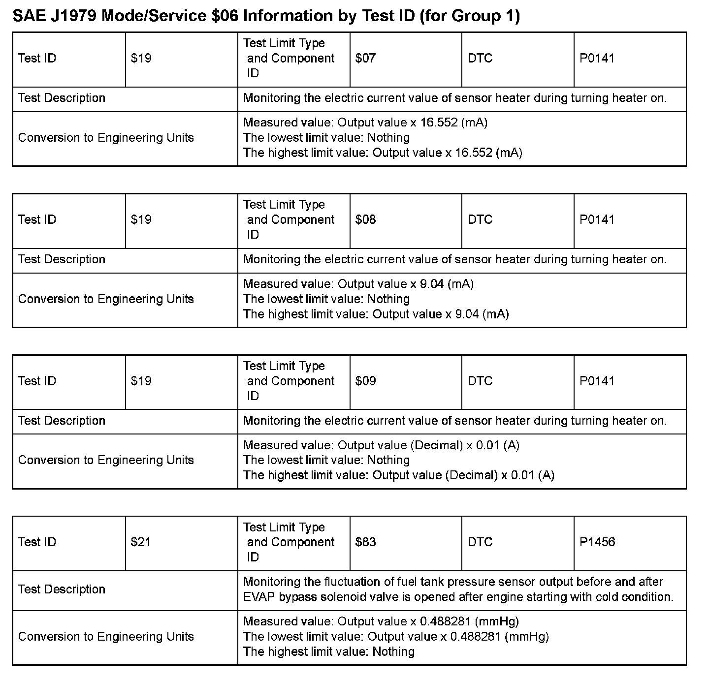 SAE J1979 Mode $06 Test Information: All 2007 Hondas