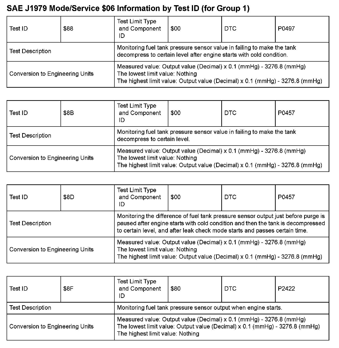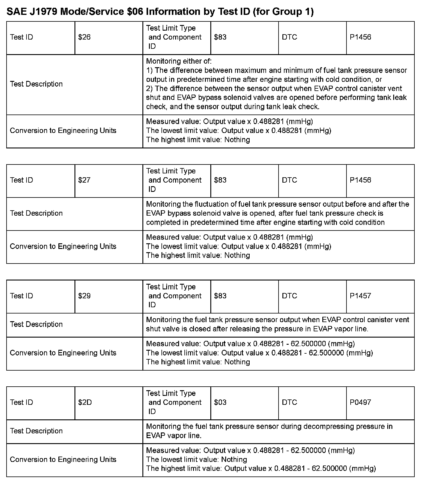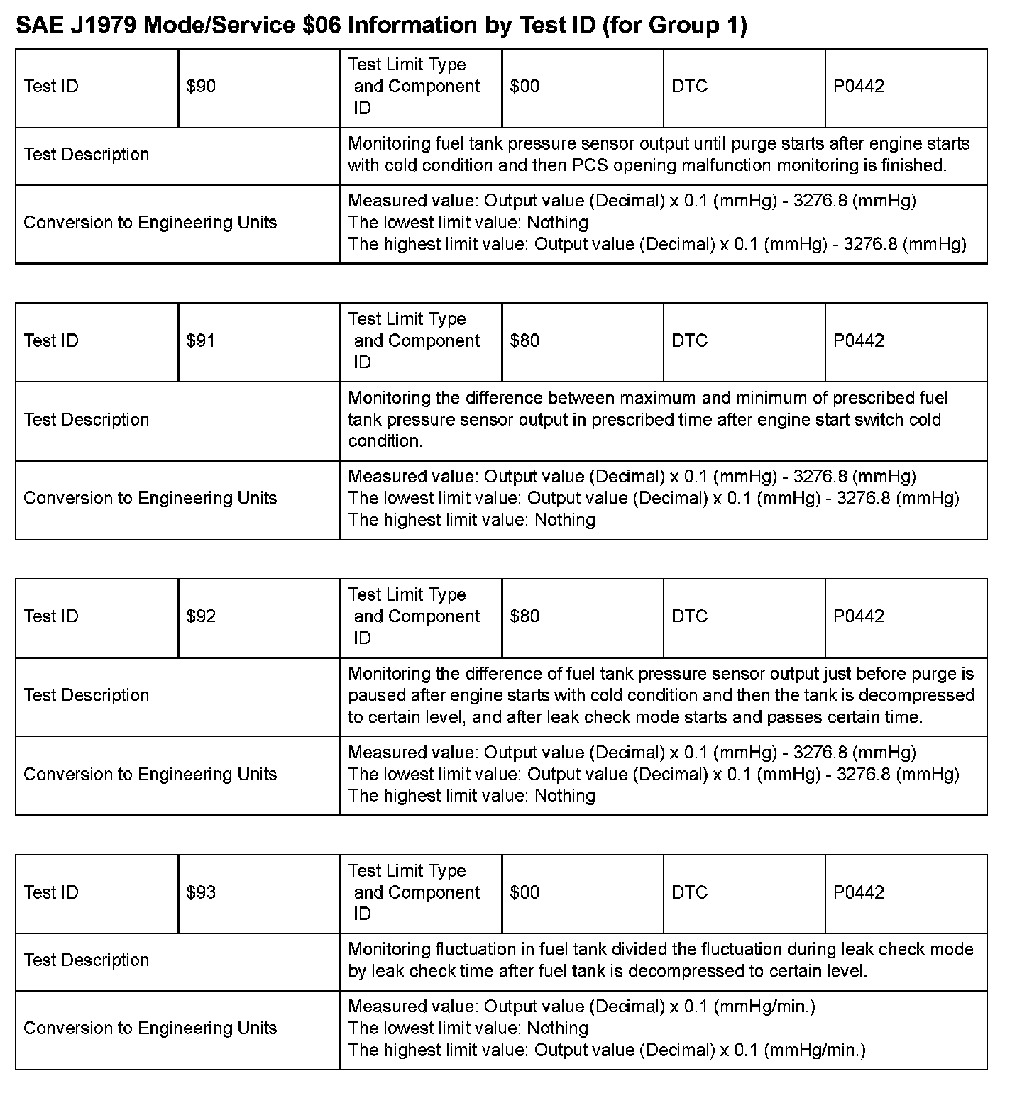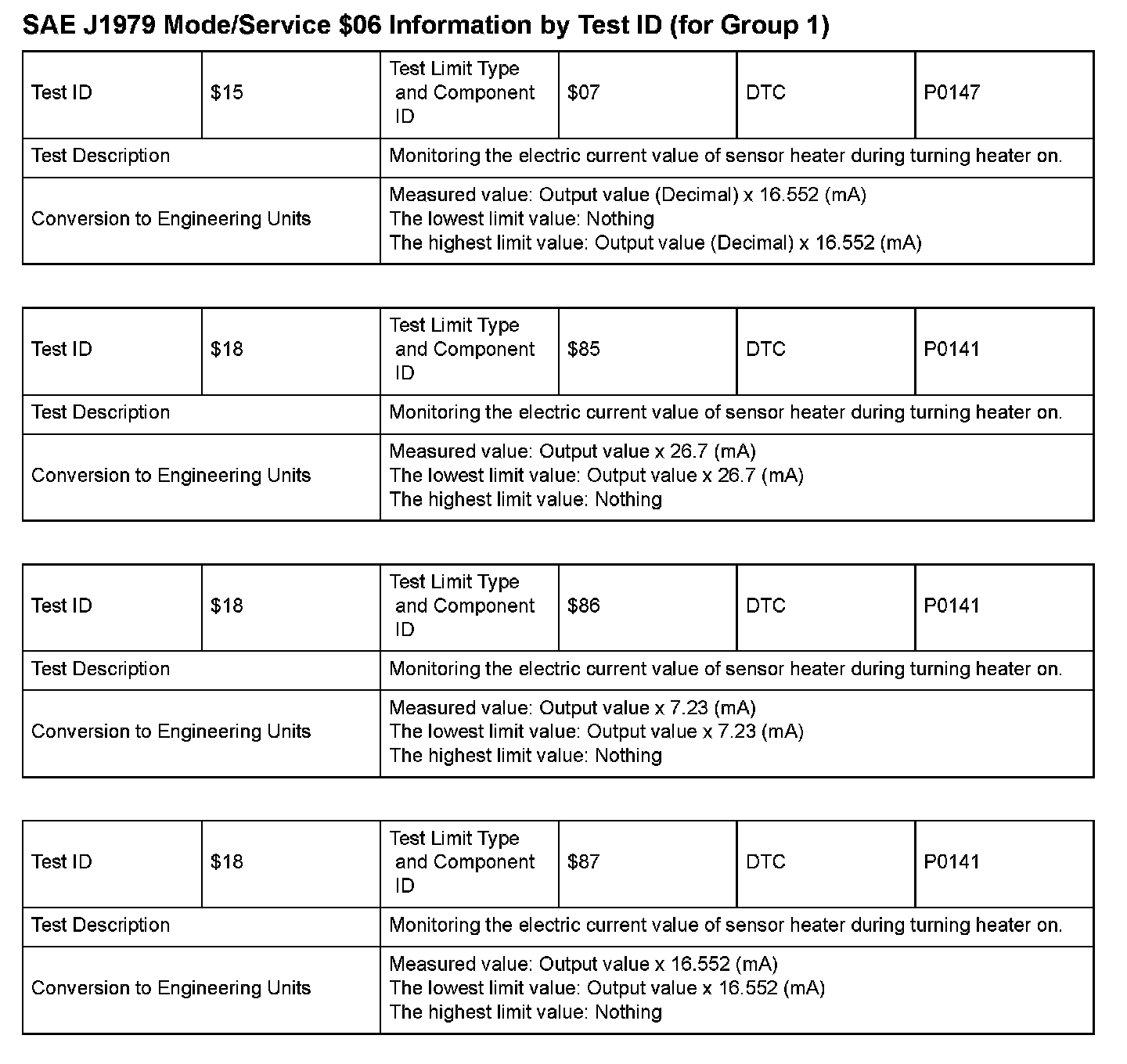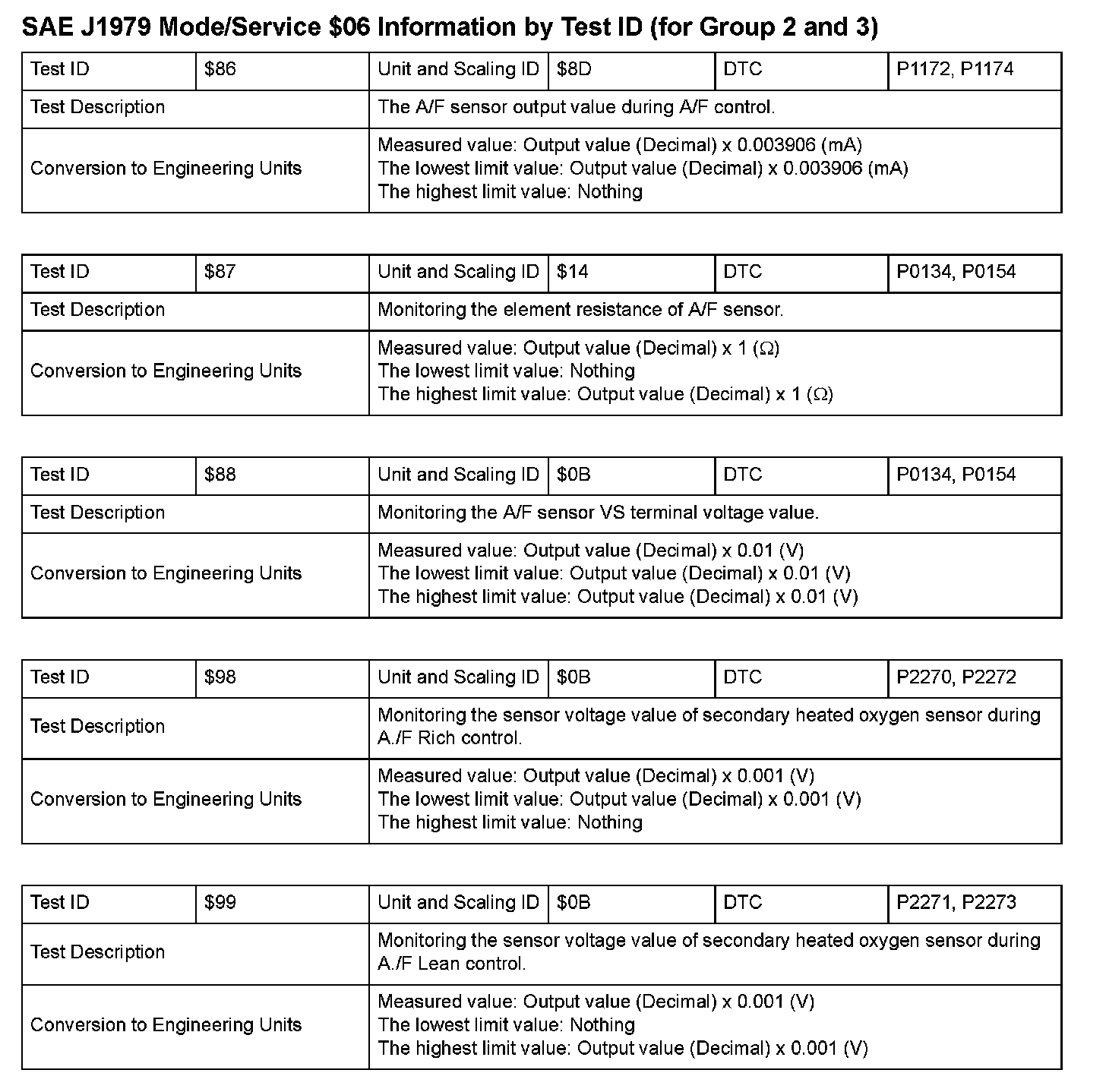 SAE J1979 Mode $06 Test Information: All 2007 Hondas