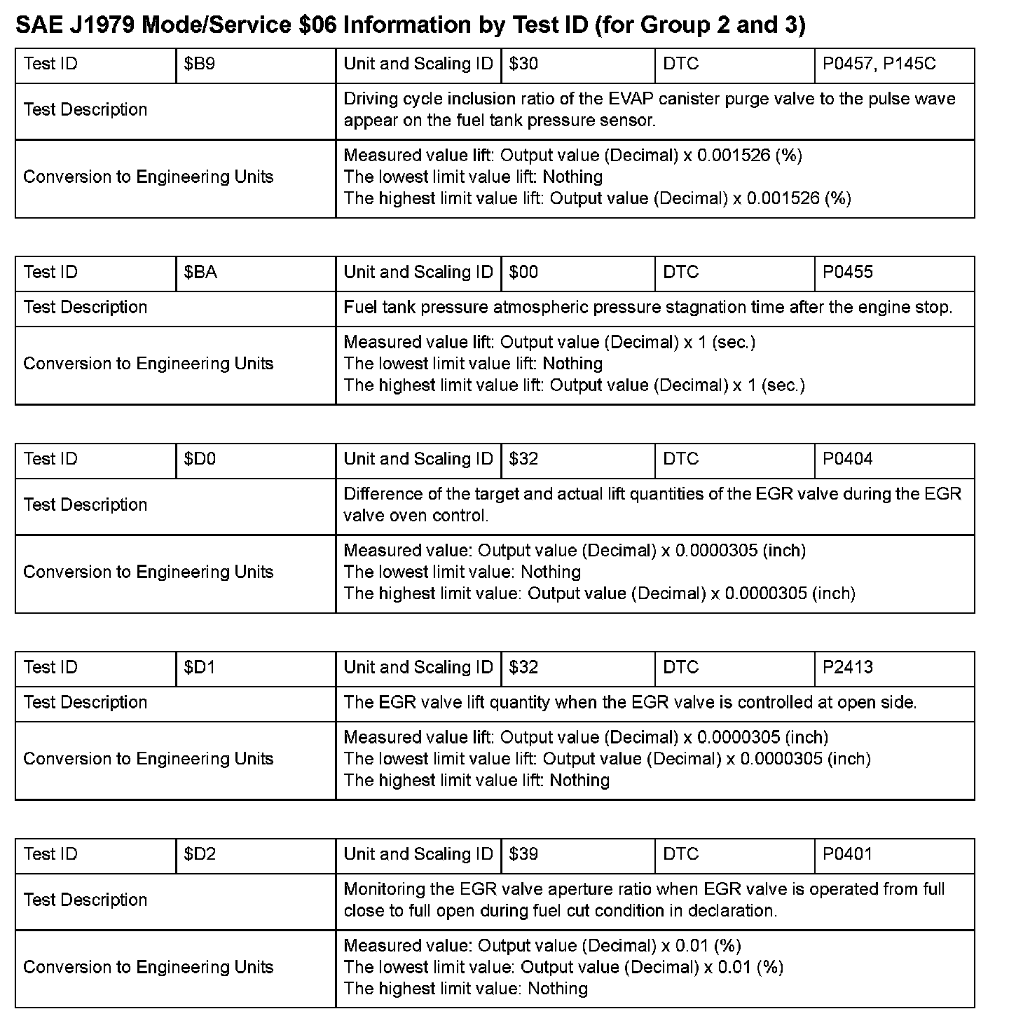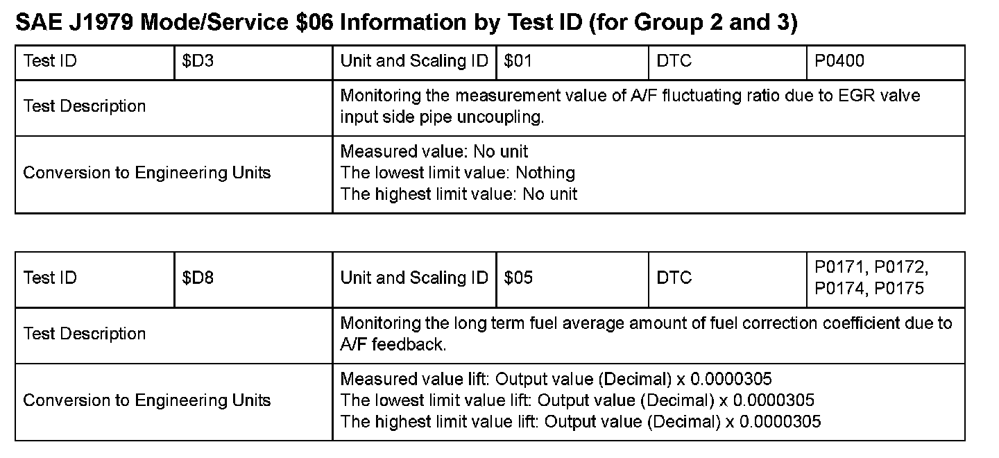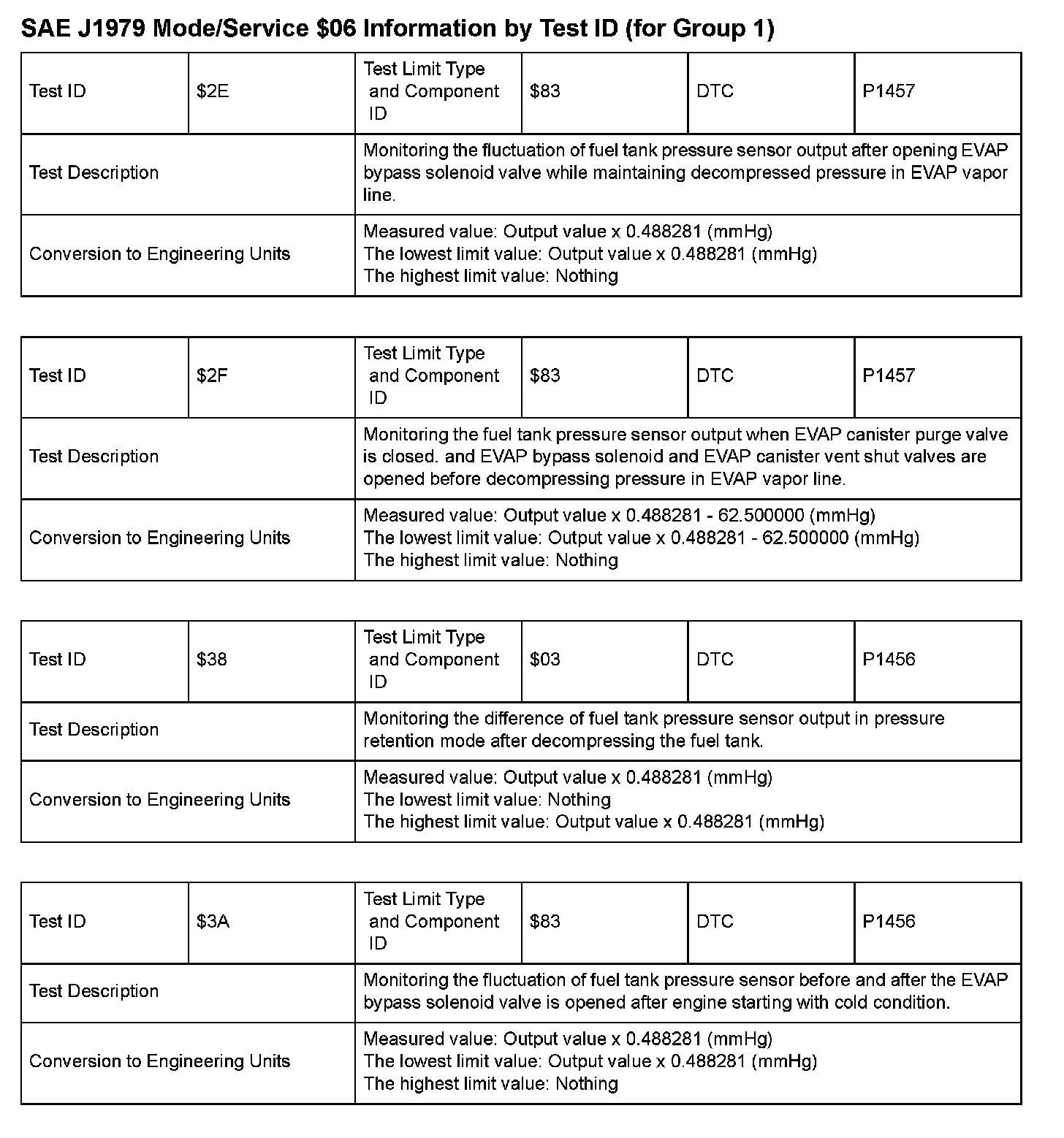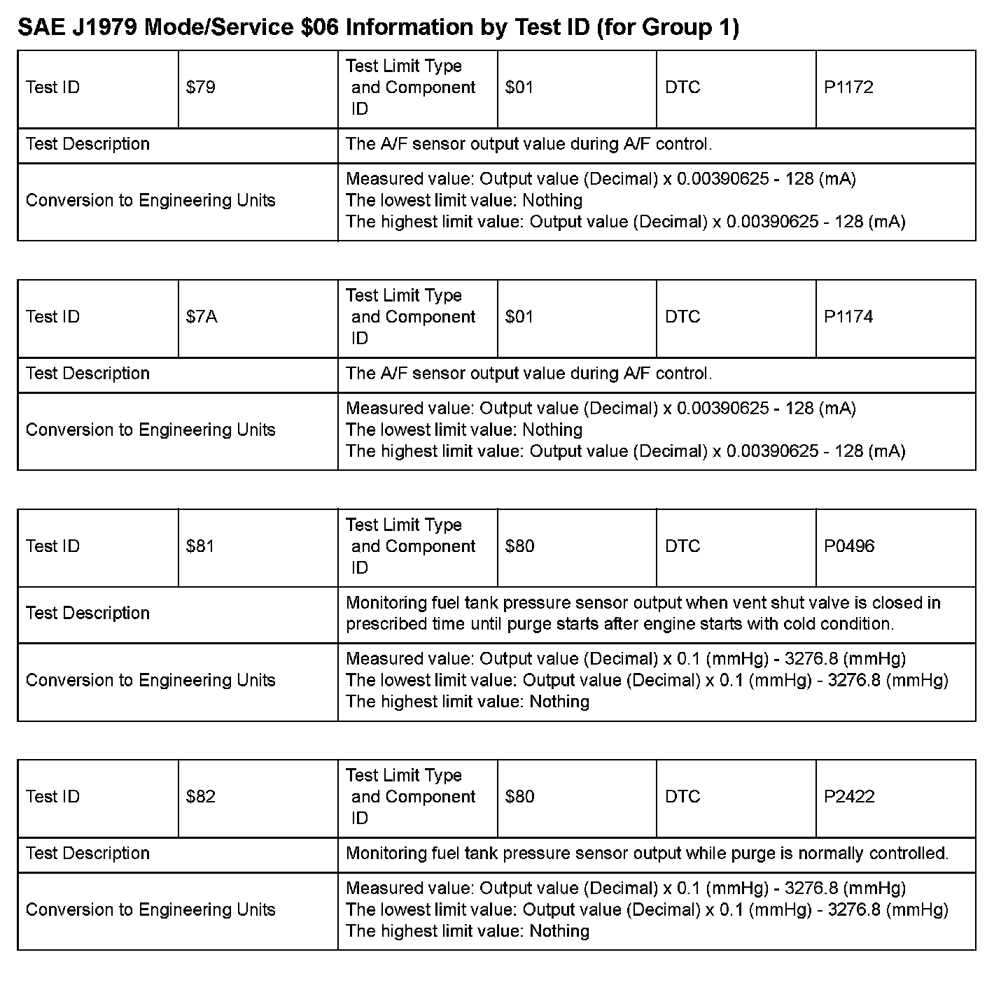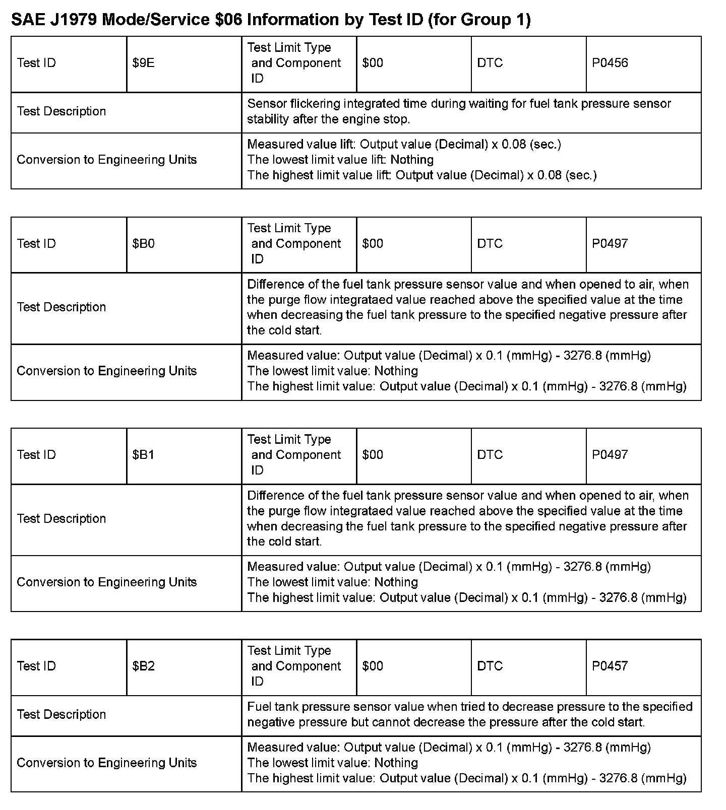 SAE J1979 Mode $06 Test Information: All 2007 Hondas