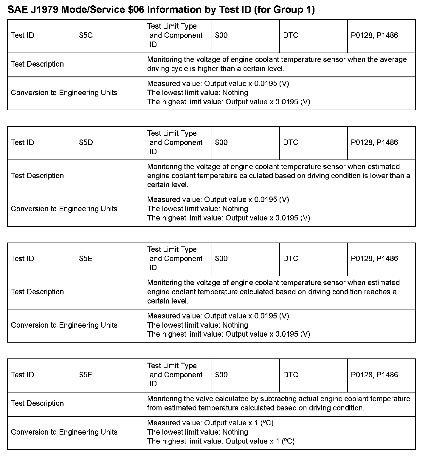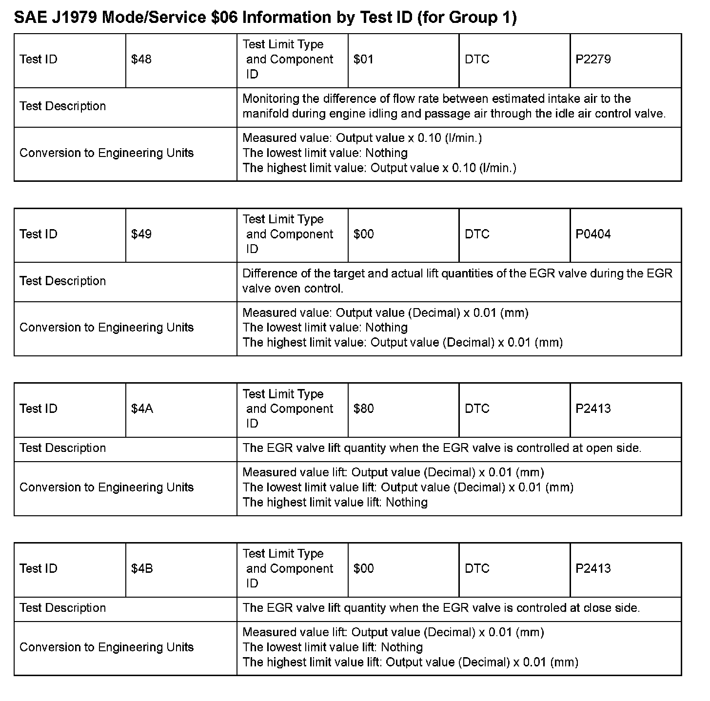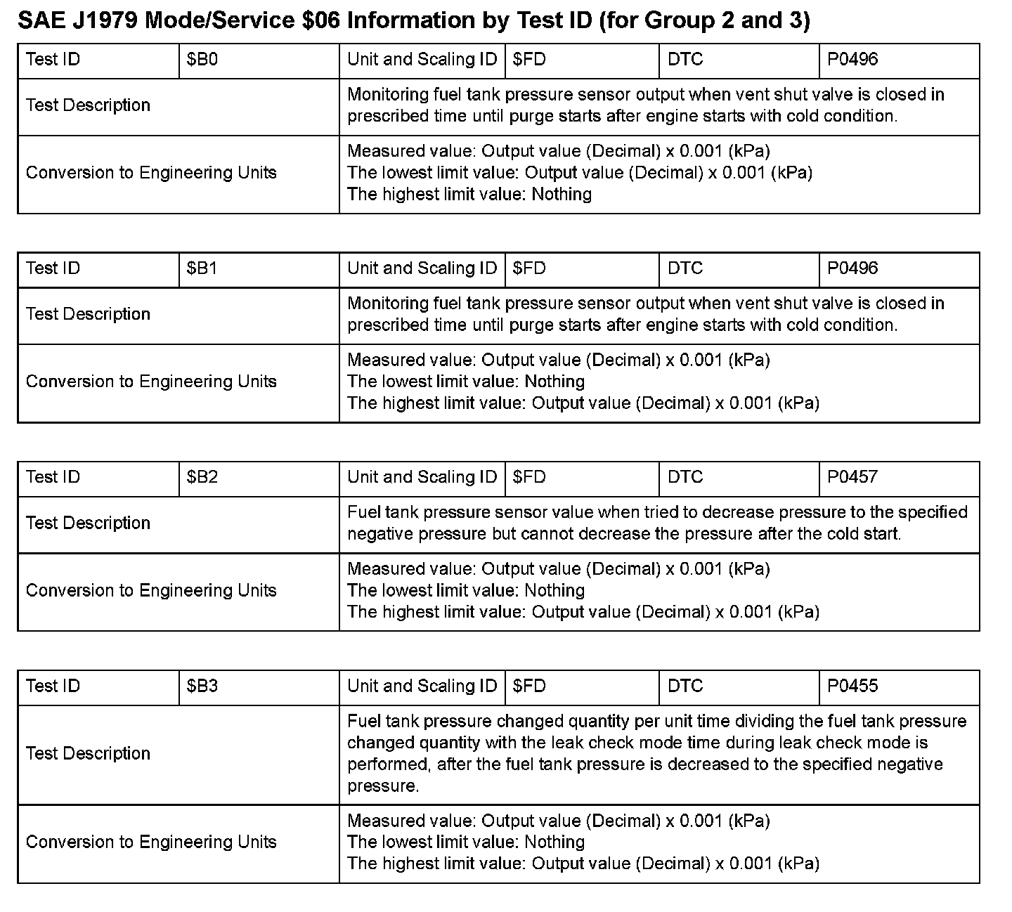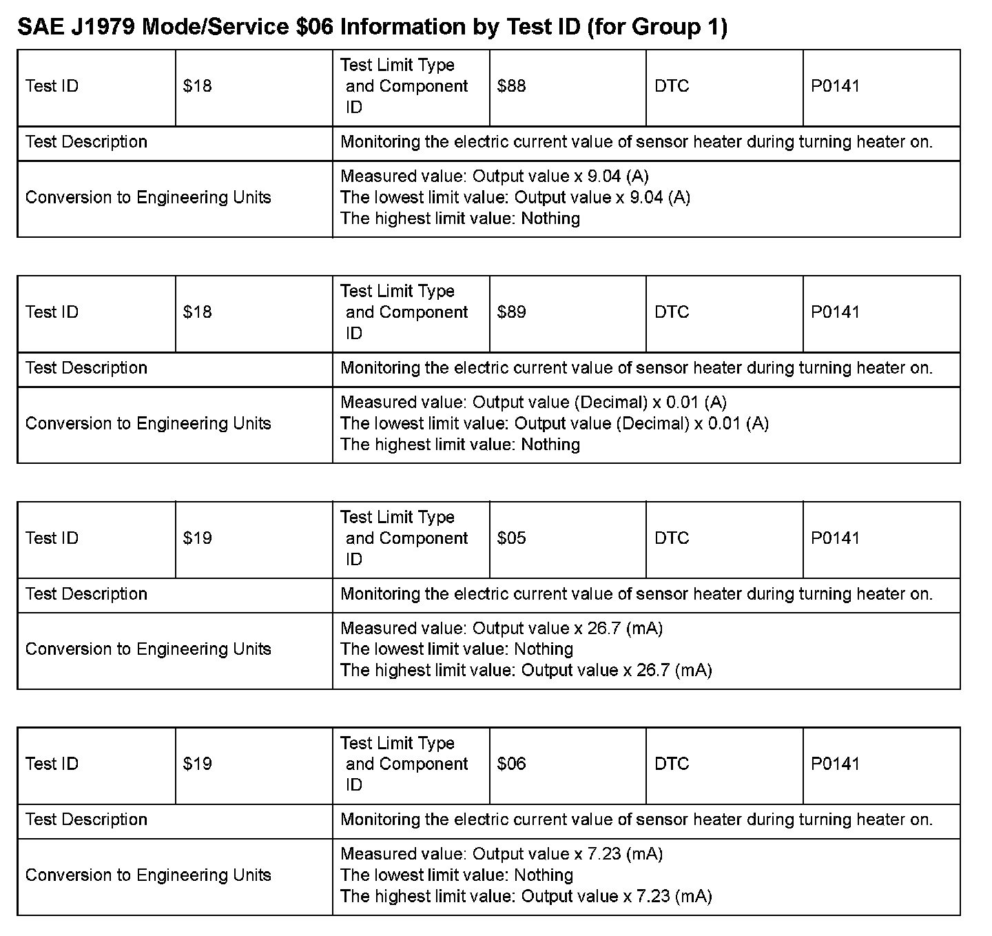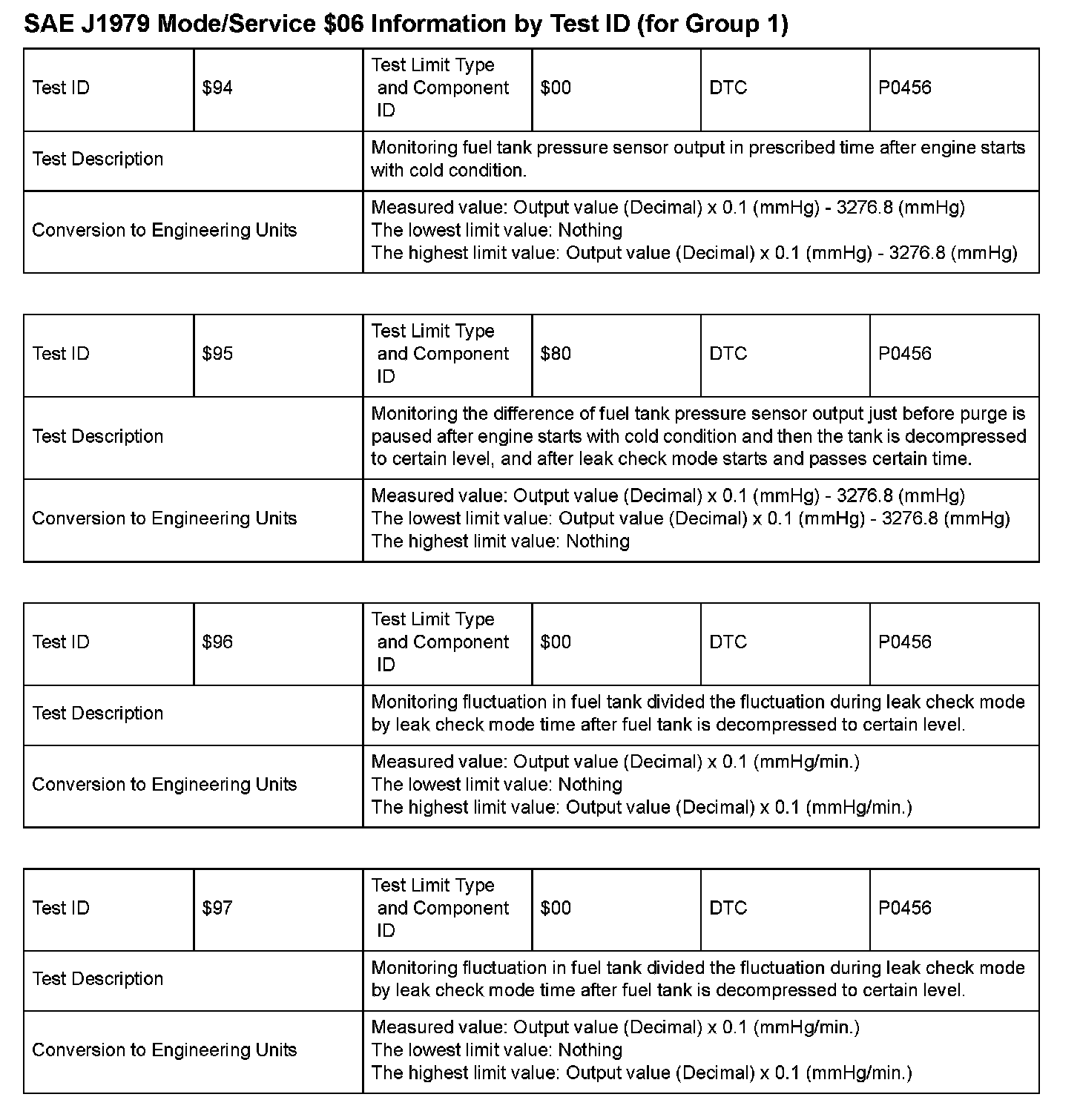 SAE J1979 Mode $06 Test Information: All 2007 Hondas