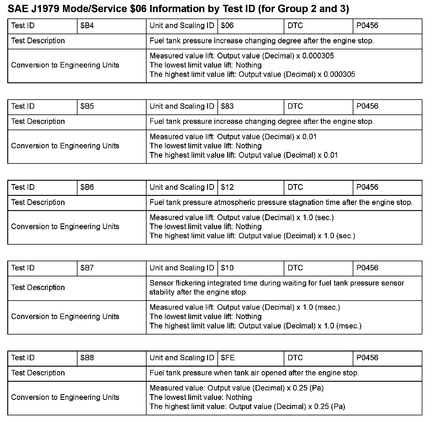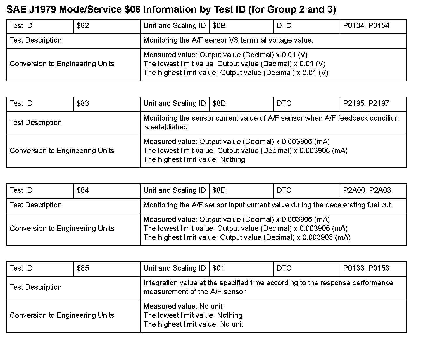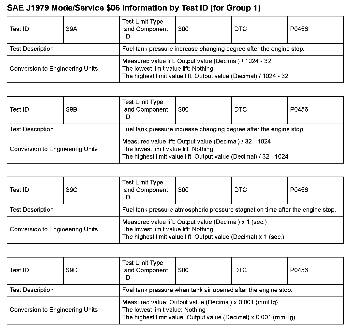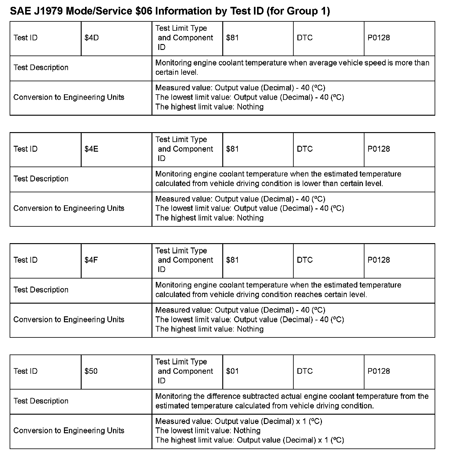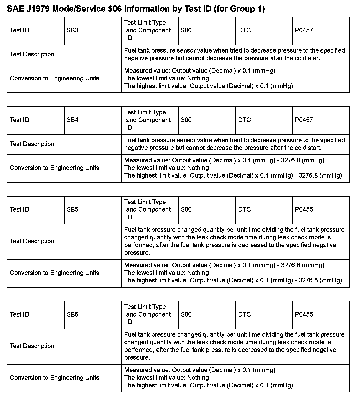 SAE J1979 Mode $06 Test Information: All 2007 Hondas