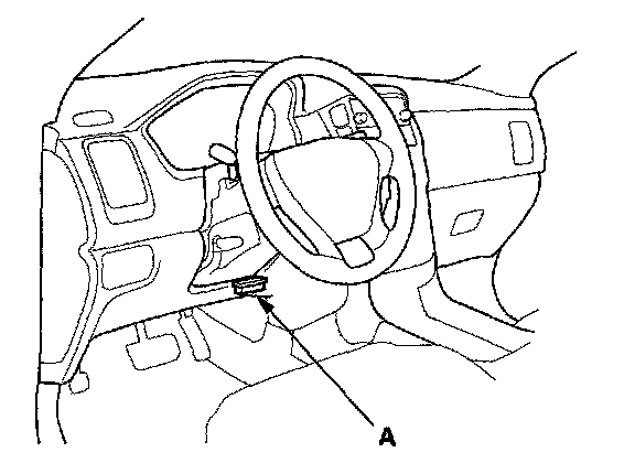 2. If the MIL stays on, connect the HDS to the data link connector (DLC) (A) located under the driver's side of the dashboard.