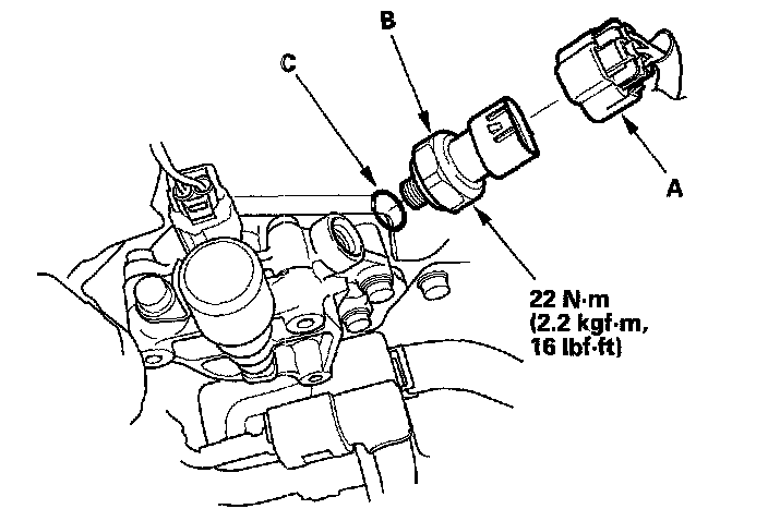 4. Install the parts in the reverse order of removal with a new O-ring (C).