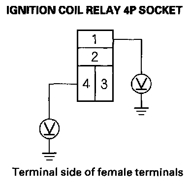 3. Measure the voltage between ignition coil relay 4P socket terminal No.1 and body ground, then terminal No.4 and body ground.