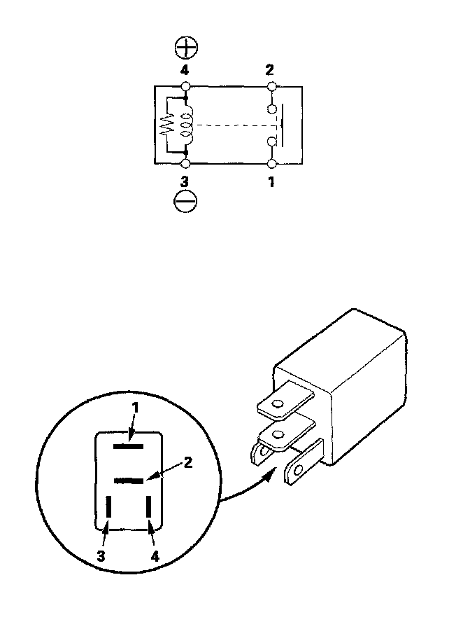 - There should be continuity between the No. 1 and No. 2 terminals when battery positive terminal is connected to the No. 4 terminal, and battery negative terminal is connected to the No. 3 terminal.