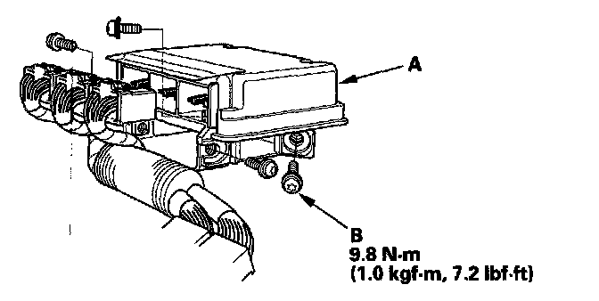 1. Install the new SRS unit (A) with TORX bolts (B), then connect the connectors to the SRS unit push them into position until it clicks.