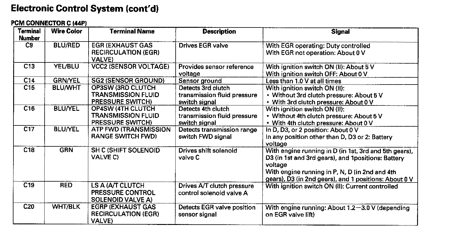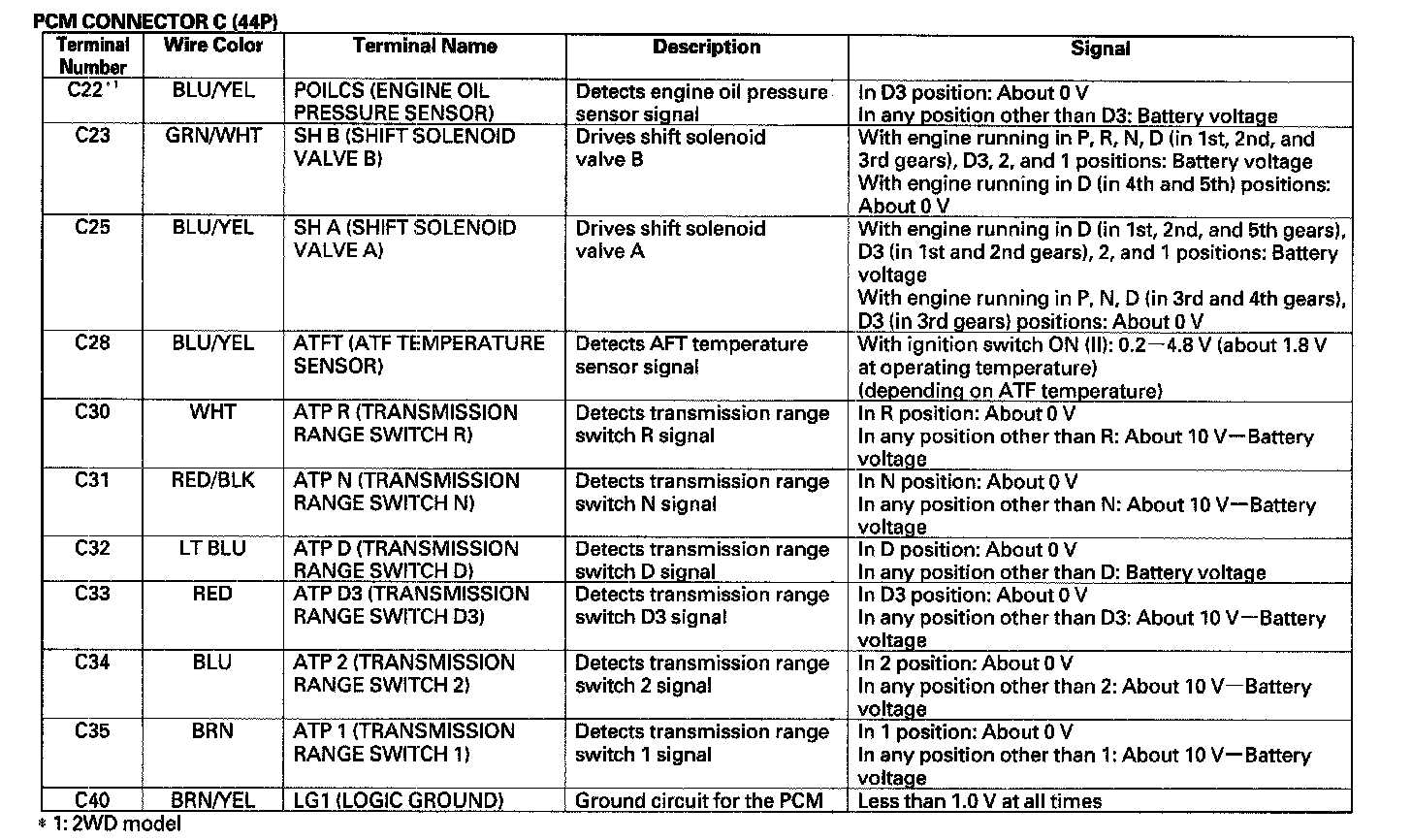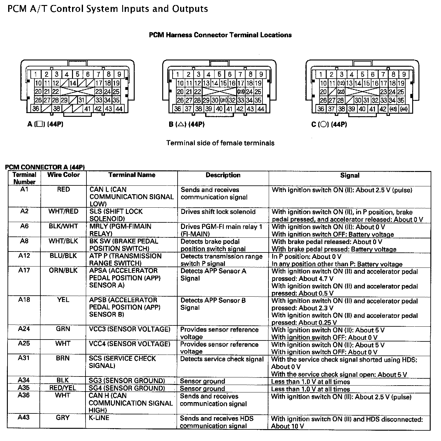 PCM A/T Control System Inputs and OutputsPCM A/T Control System Inputs and Outputs (Part 1):