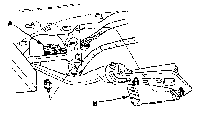 3. Remove the bolts and the engine mount control unit(B).