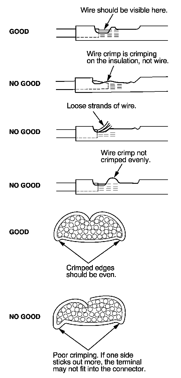 8. Inspect the quality of the wire crimp. If it has any of the above mentioned NO GOOD crimps, cut it off and start over.