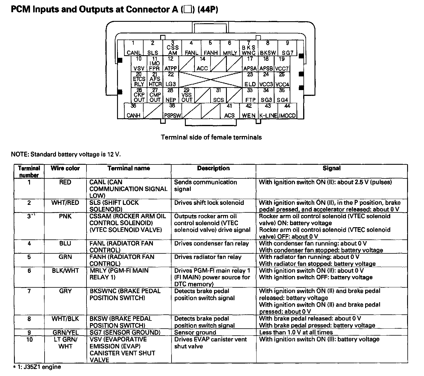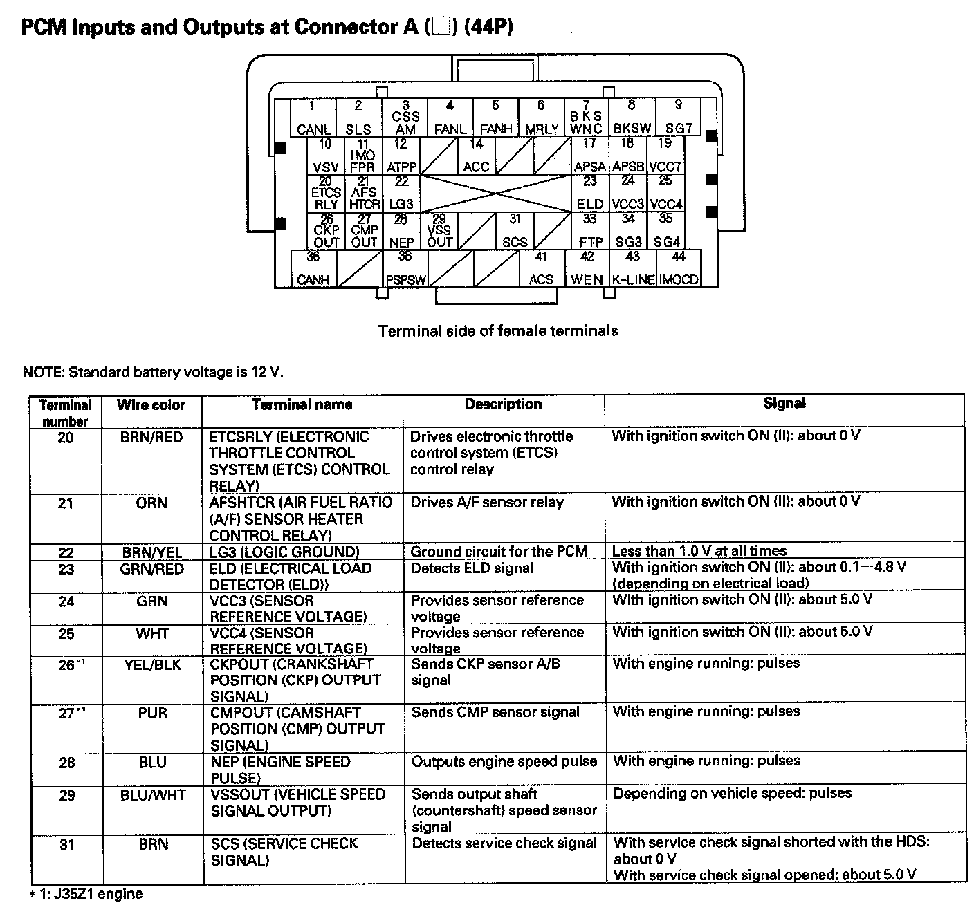 PCM Inputs And Outputs Connector A (44P) (Part 1):