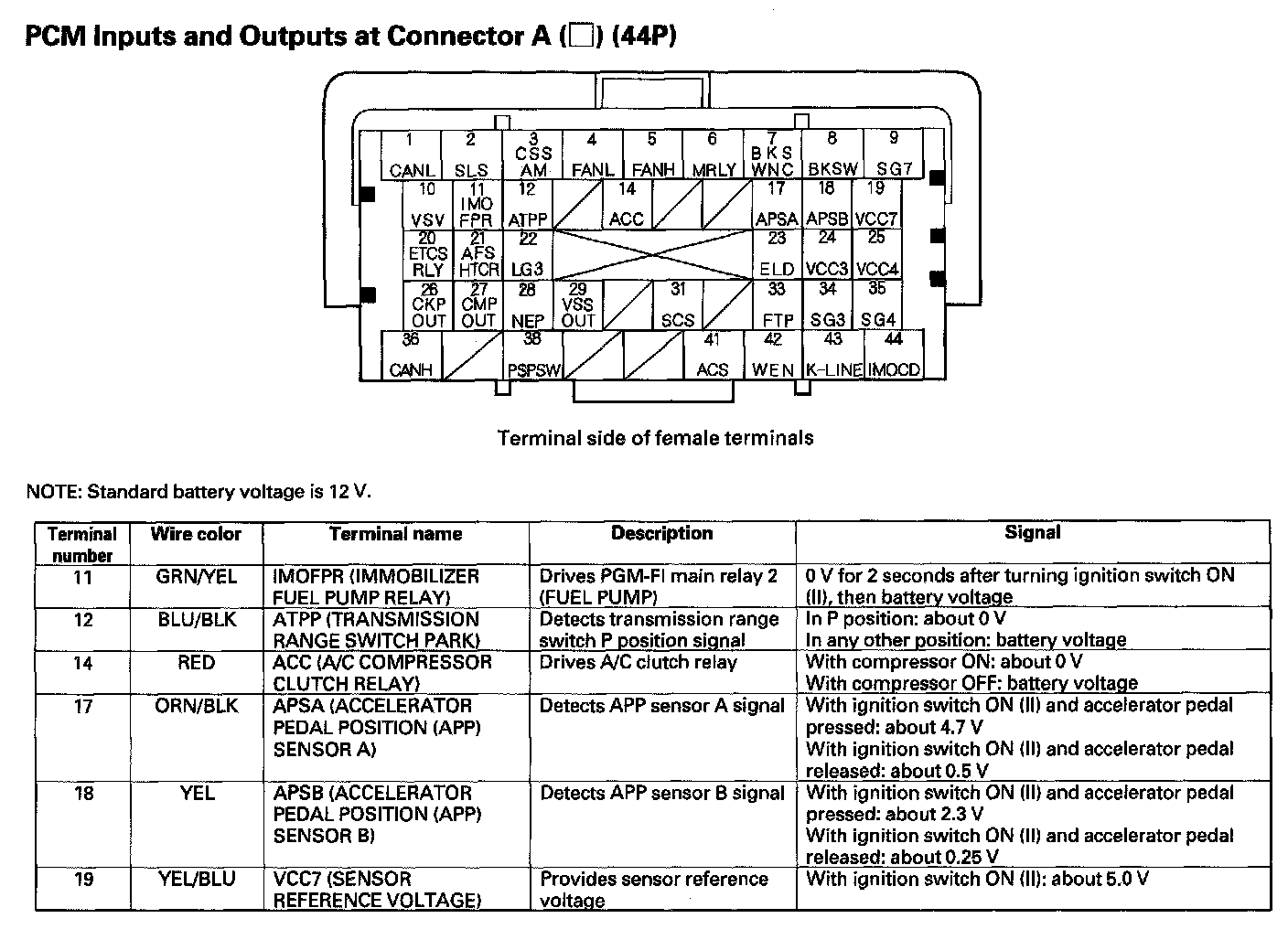 PCM Inputs And Outputs Connector A (44P) (Part 2):