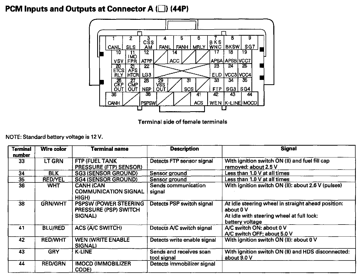 PCM Inputs And Outputs Connector A (44P) (Part 3):