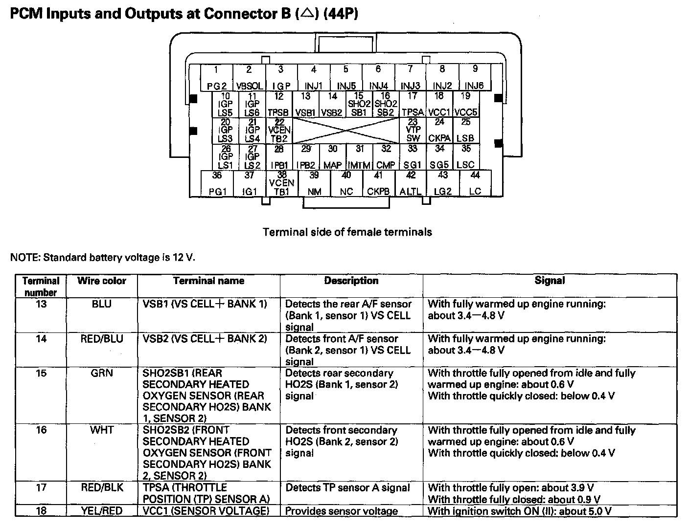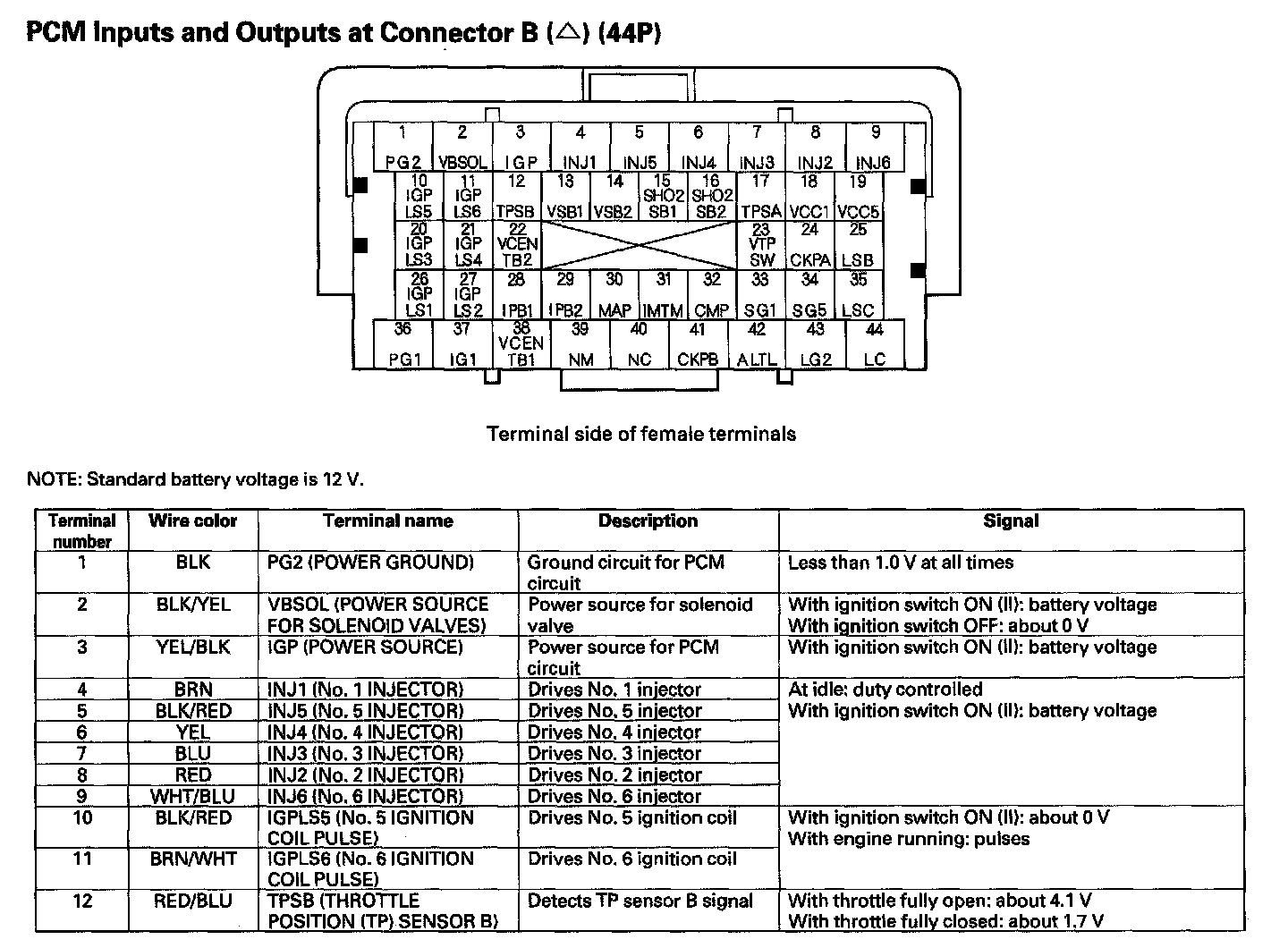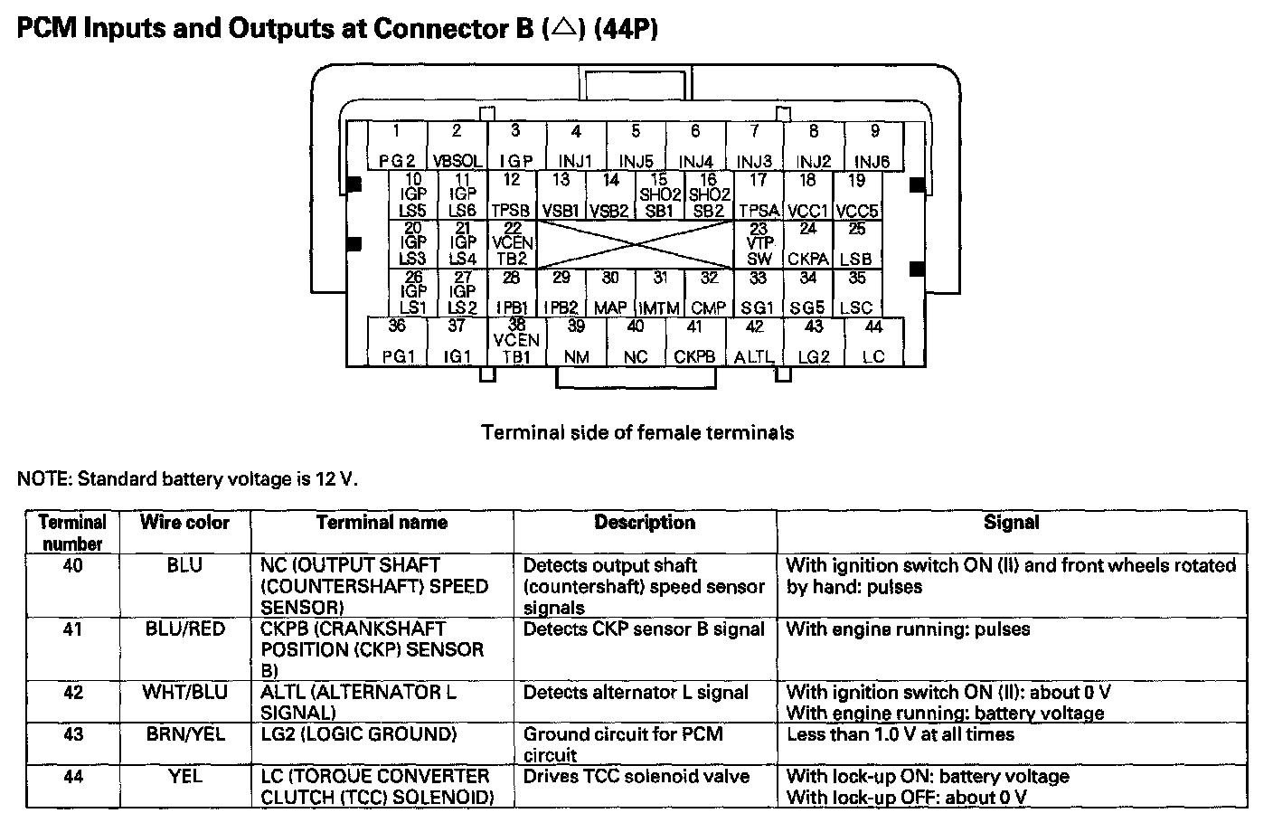 PCM Inputs And Outputs Connector B (44P) (Part 5):