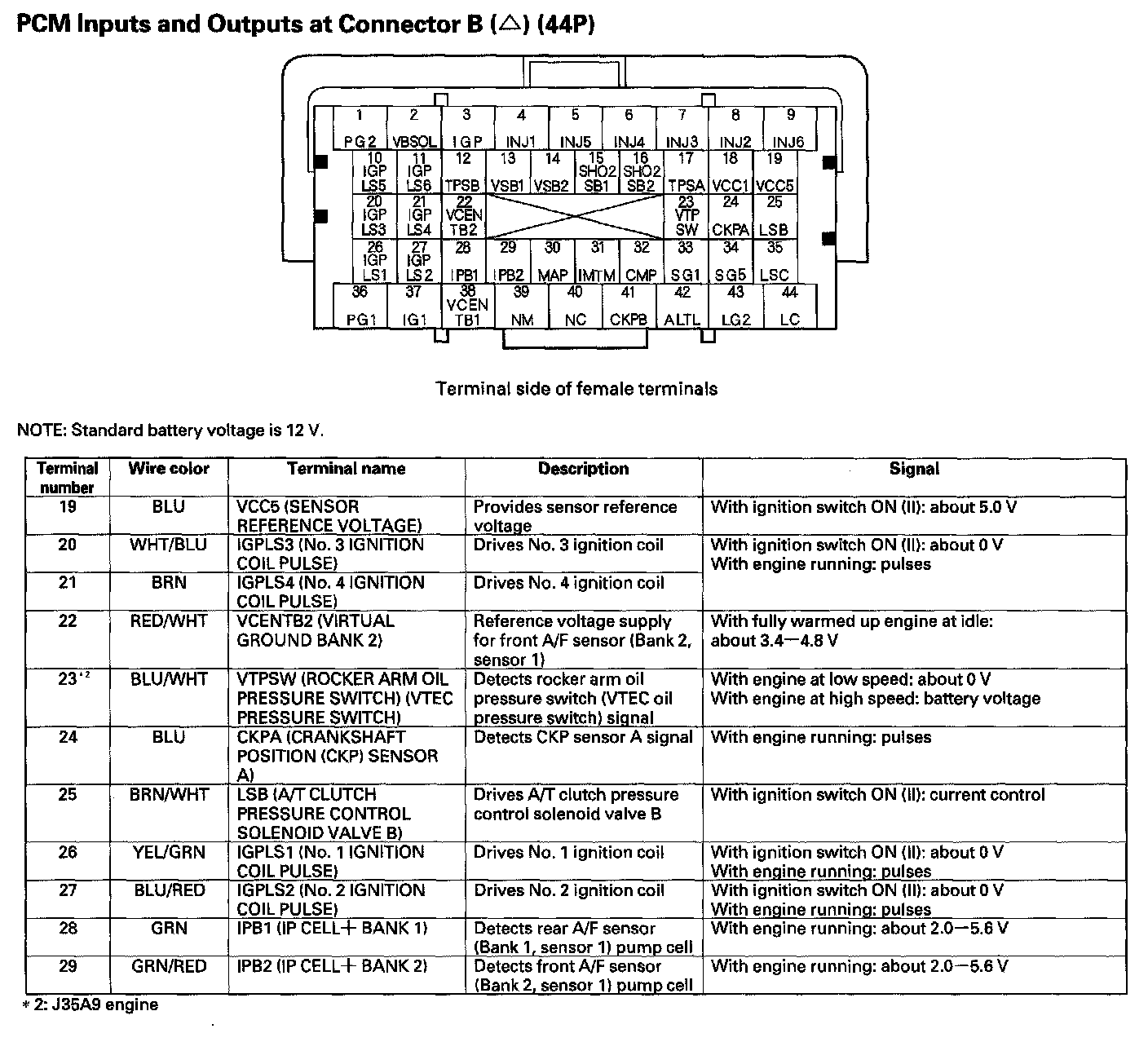 PCM Inputs And Outputs Connector B (44P) (Part 3):