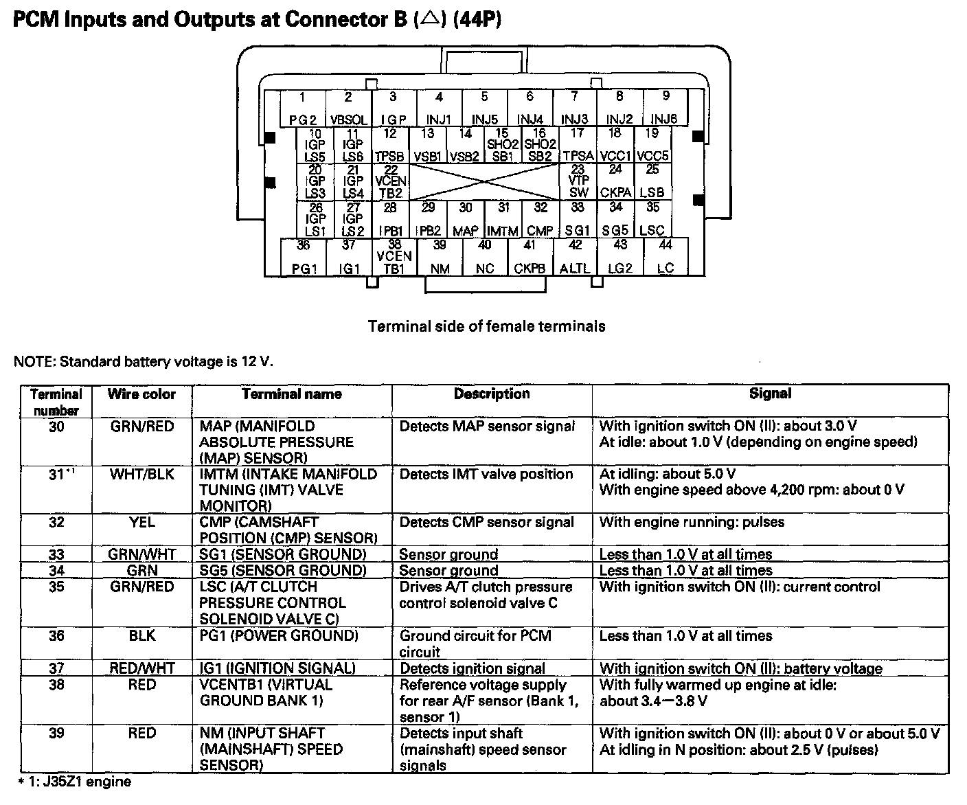 PCM Inputs And Outputs Connector B (44P) (Part 1):