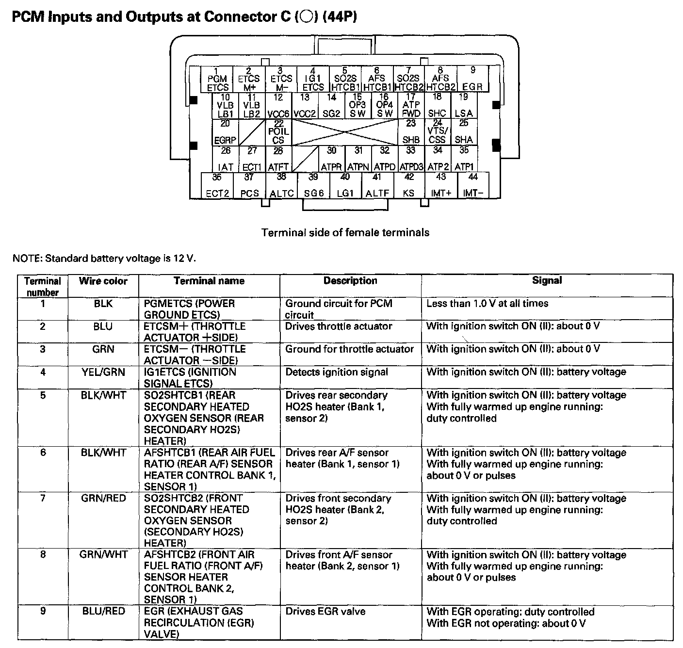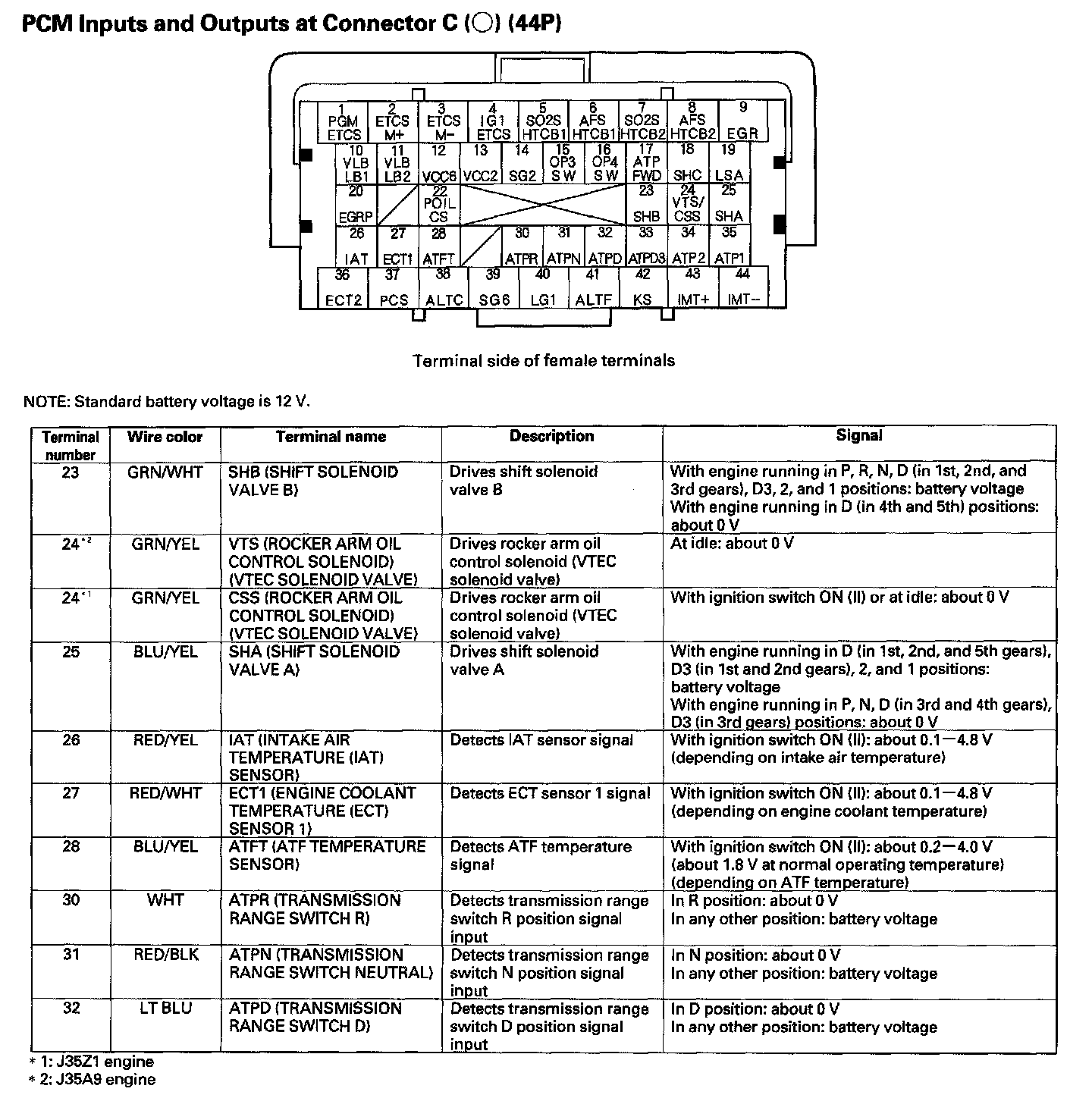 PCM Inputs And Outputs Connector C (44P) (Part 2):
