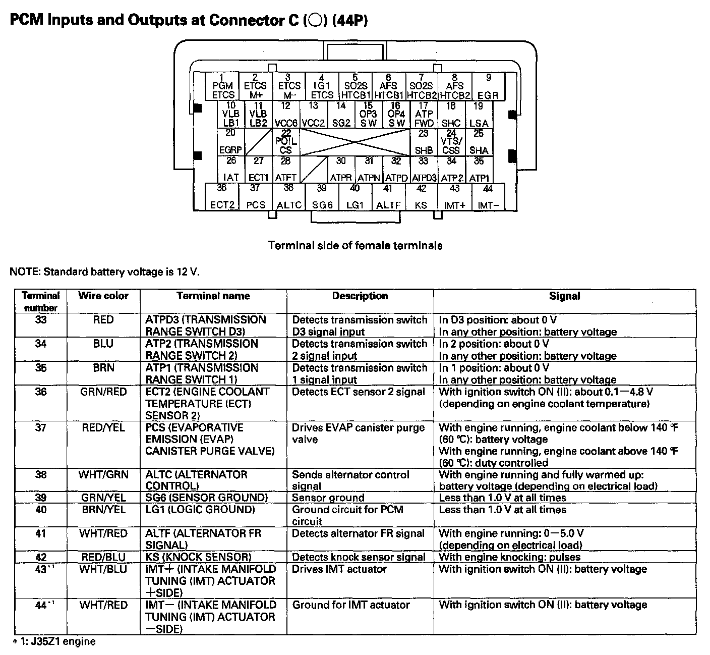 PCM Inputs And Outputs Connector C (44P) (Part 1):