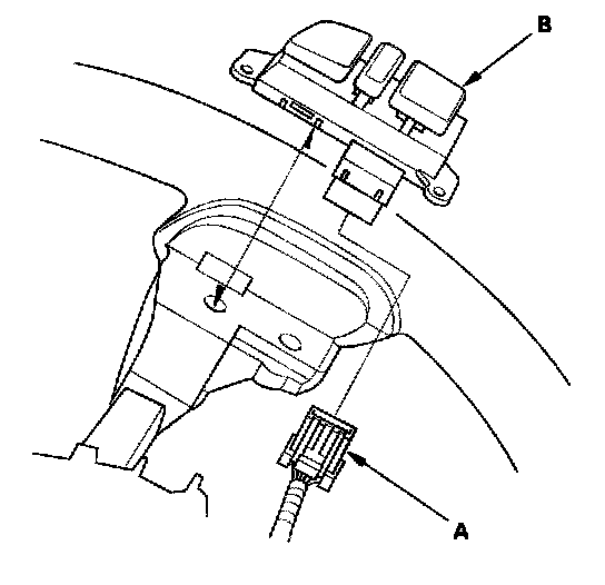 4. Disconnect the 7P connector (A), then remove the cruise control set/decel, resume/accel, cancel switch (B).