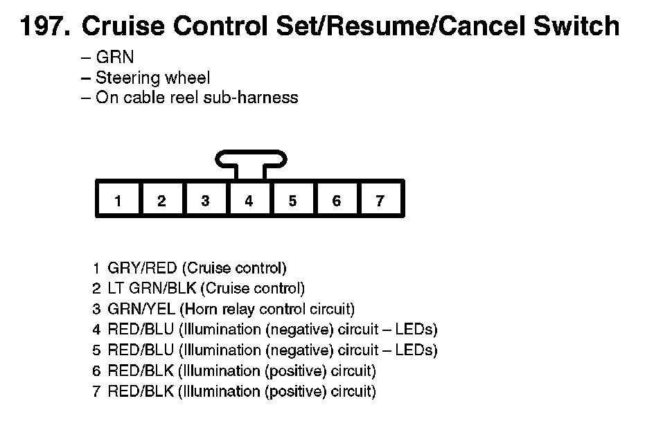 197. Cruise Control Set/Resume/Cancel Switch: