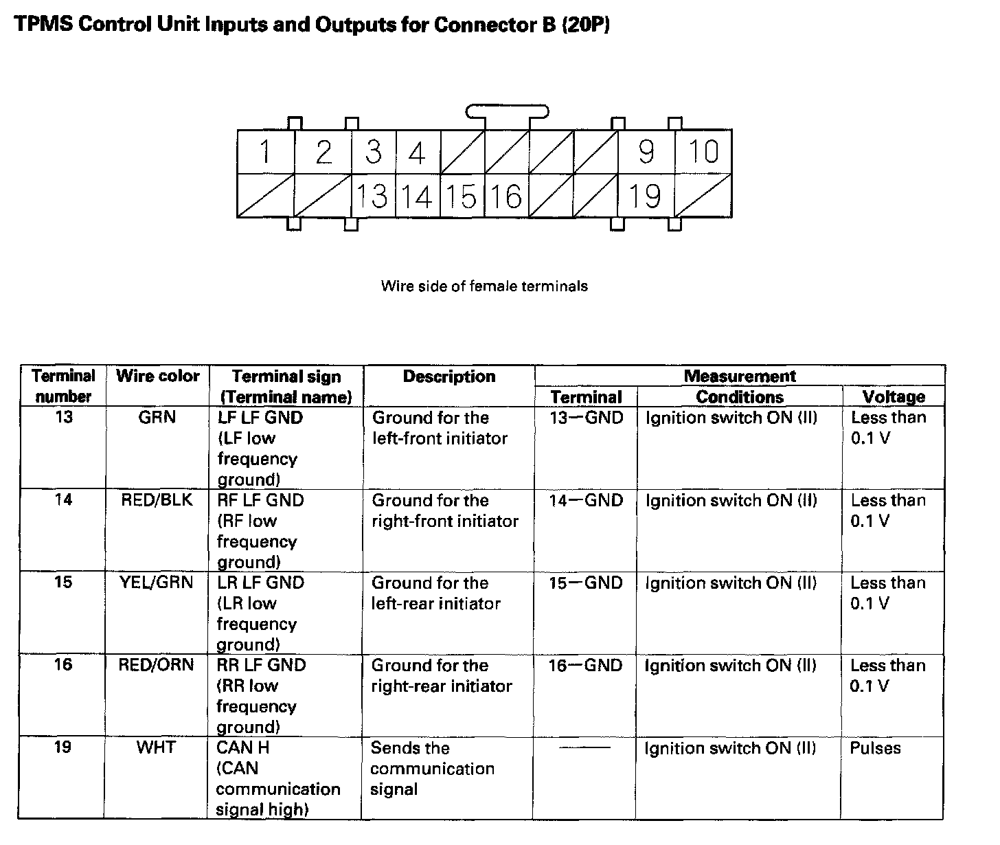 TPMS Control Unit Inputs and Outputs (Part 1):