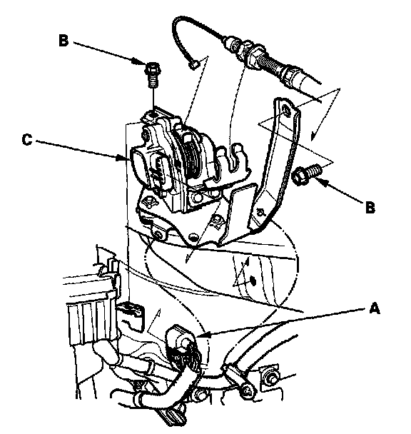 Remove the bolts (B) and the APP sensor (C).
