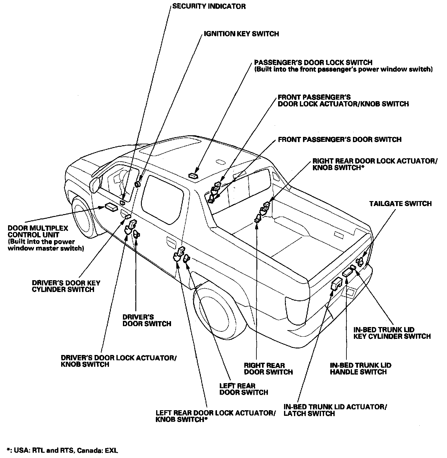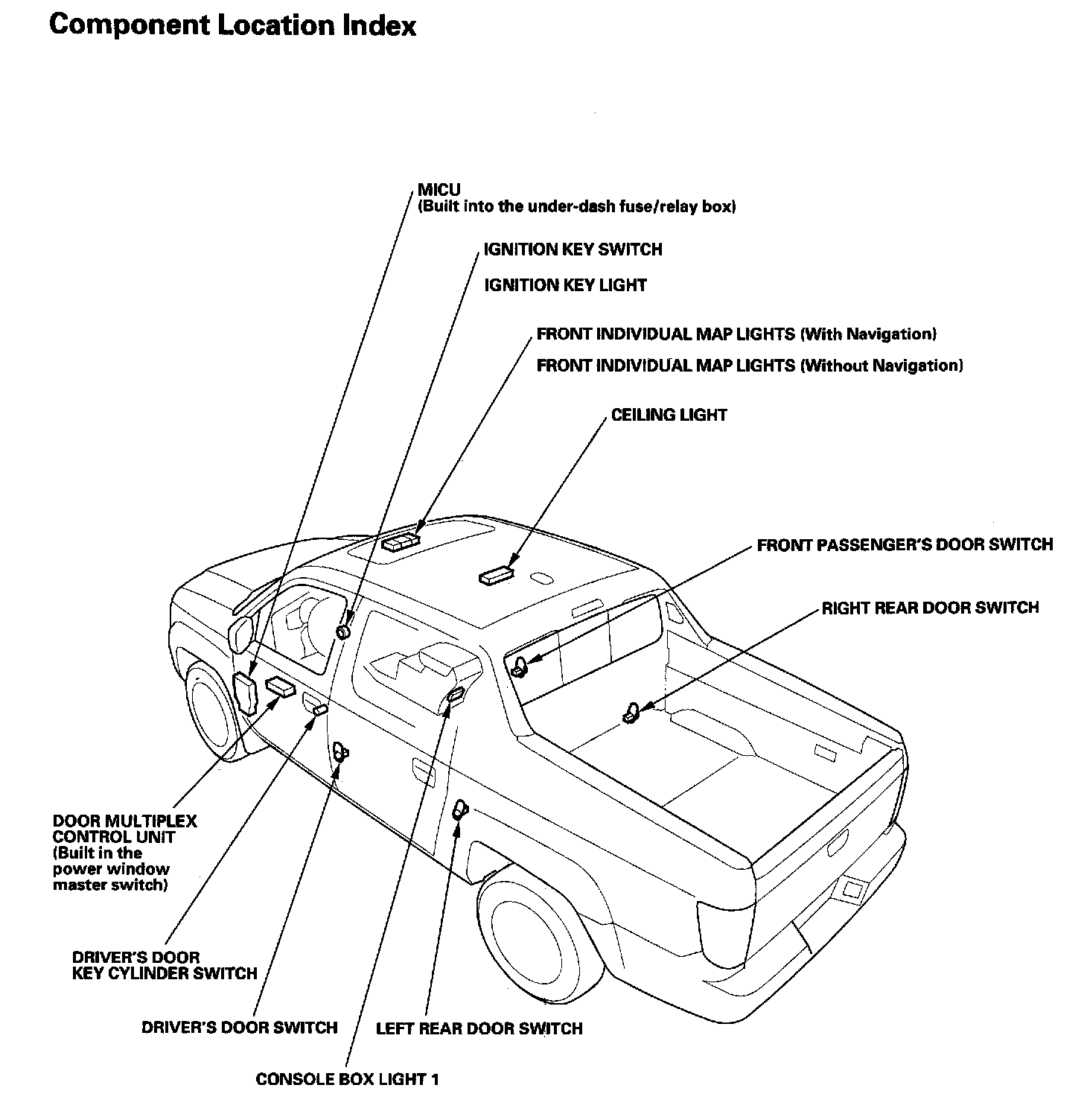 Keyless/Power Door Locks/Security System Component Location Index: