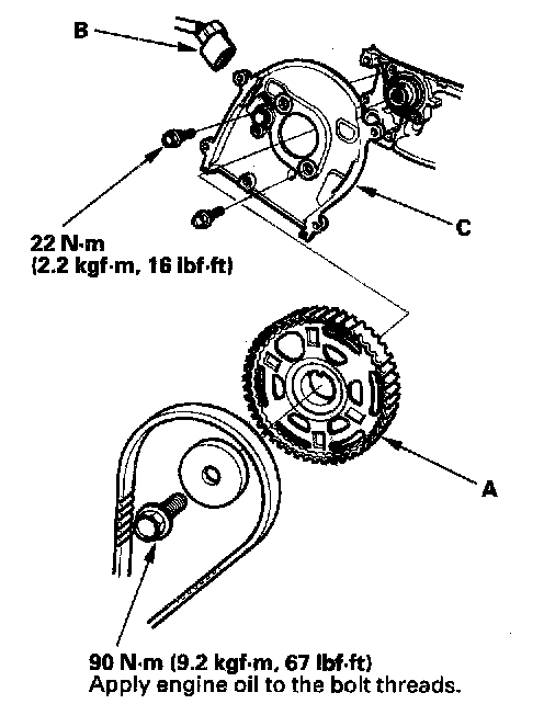 3. Disconnect the CMP sensor connector (B), then remove the back cover (C).