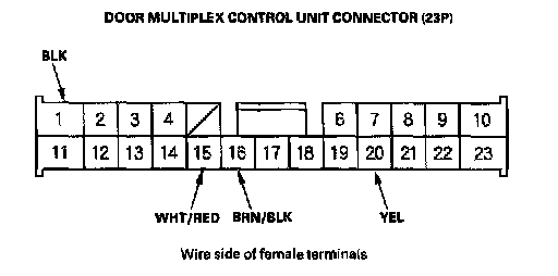 7. Reconnect the connector to the door multiplex control unit, and make these input tests at the connector.